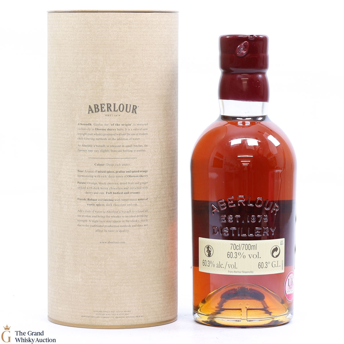 Meaning 'of the origin' in Gaelic, A'bunadh is made in homage to Aberlour's founder, James Fleming. This is batch No. 35 of the popular A'Bunadh single malt. It has been matured in Spanish Oloroso sherry butts and bottled at cask strength at 60.3% creating a dark luxurious whisky.