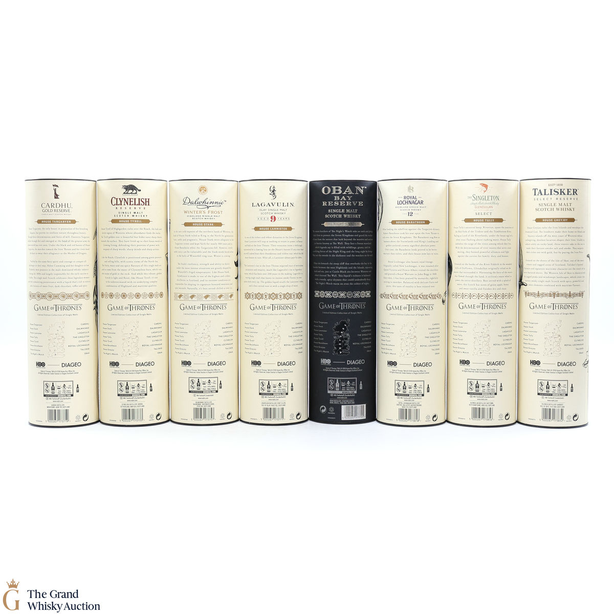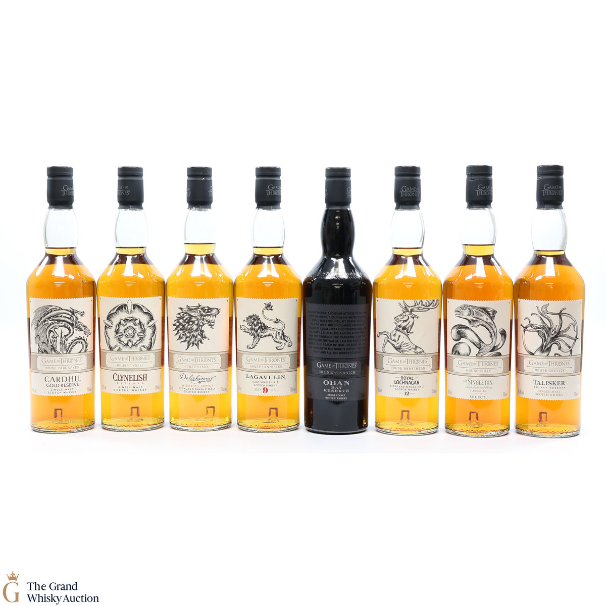 Each of the Game of Thrones Scotch whiskies has been paired with a particular house from the seven kingdoms in the television series, plus the Night’s Watch guard.