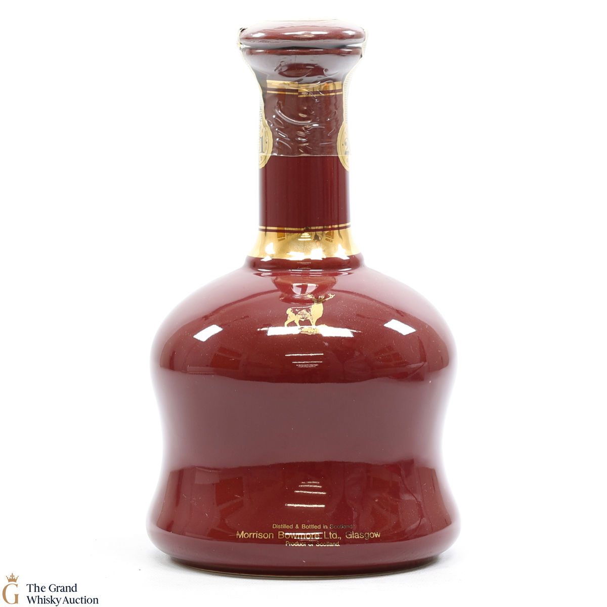 A ruby coloured, ceramic decanter of Glen Garioch 21 Year Old produced by Buchan Thistle Ceramics.