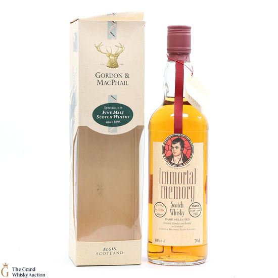 Made for the Spanish market, Immortal Memory Scotch Whisky was made to recognise the great work of Scots poet Robert Burns. It was produced by Gordon & MacPhail.