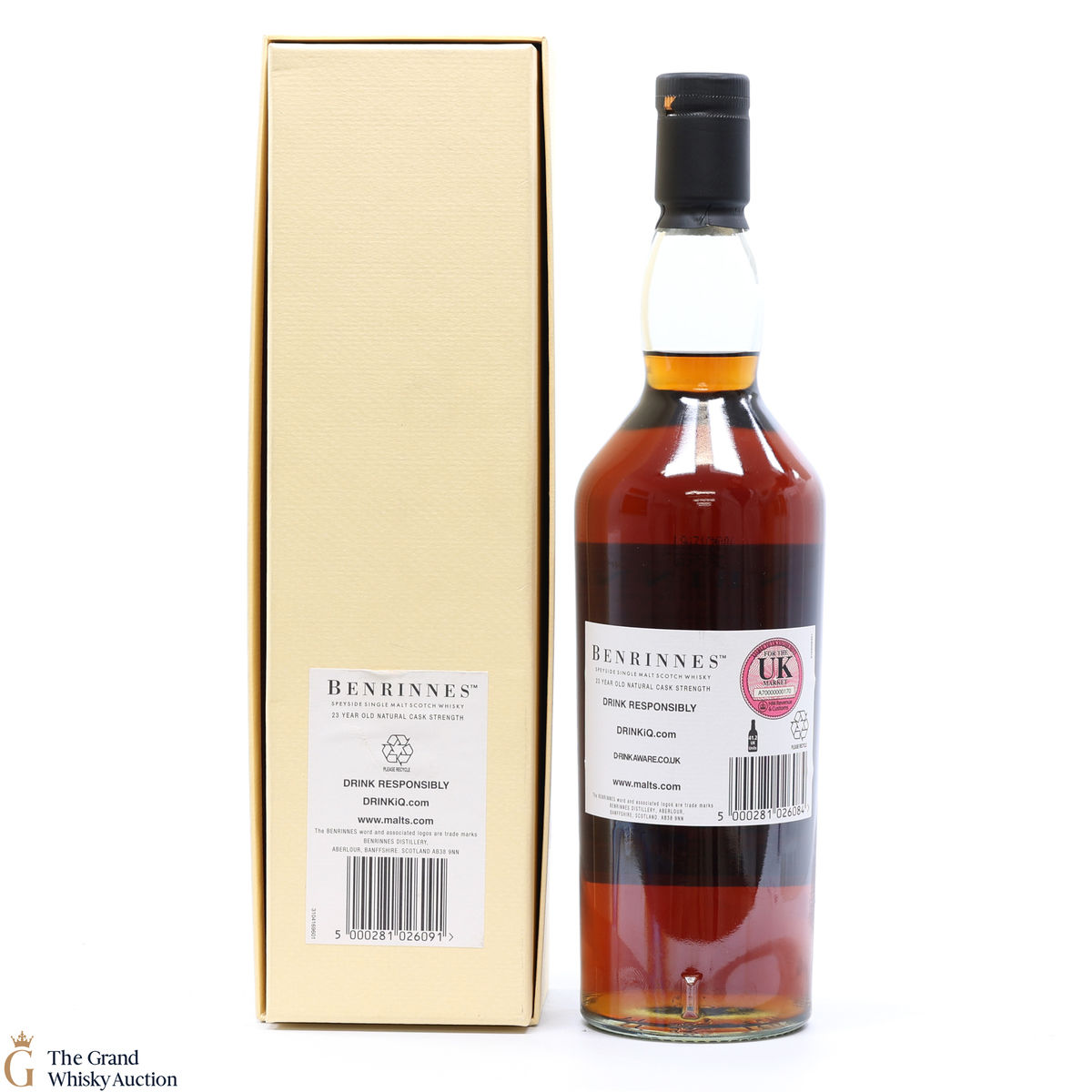 Due to the various ages of bottles and their seals, the condition of liquid is at the buyer's discretion and no claim can be lodged against failure/leakage in transit. Loss and breakage cover is available at 3% of the hammer price as standard. If the lot is not insured, no claim can be lodged against the courier or The Grand Whisky Auction for breakage or loss in transit.