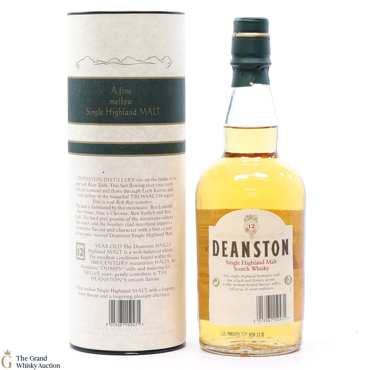 Due to the various ages of bottles and their seals, the condition of liquid is at the buyer's discretion and no claim can be lodged against failure/leakage in transit. Loss and breakage cover is available at 3% of the hammer price as standard. If the lot is not insured, no claim can be lodged against the courier or The Grand Whisky Auction for breakage or loss in transit.