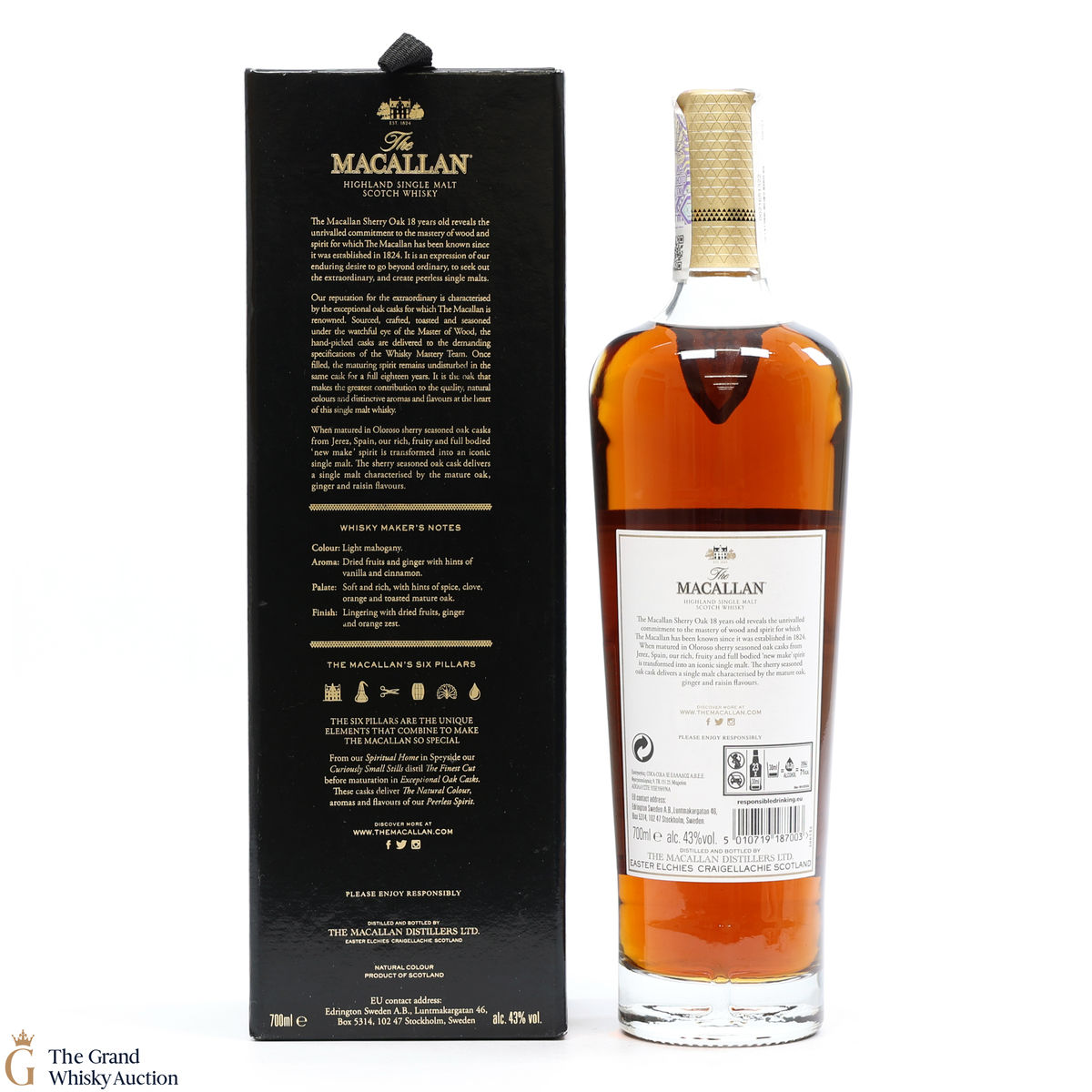 This annual release of The Macallan's popular 18 Year Old Sherry Oak is matured exclusively in sherry seasoned casks, built from both Spanish and American oak, providing a beautifully dark flavour with rich aromas.
