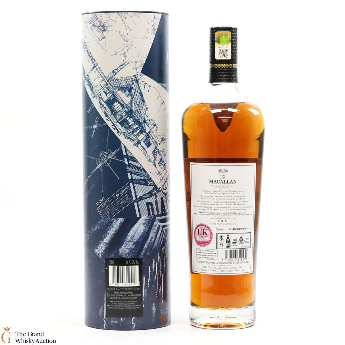 The remarkable James Bond 60th Anniversary Release is a celebration of 007 and The Macallan as modern innovators linked by their Scottish heritage. Each bottle’s packaging features an original illustrative design and colour to denote the decade it represents.