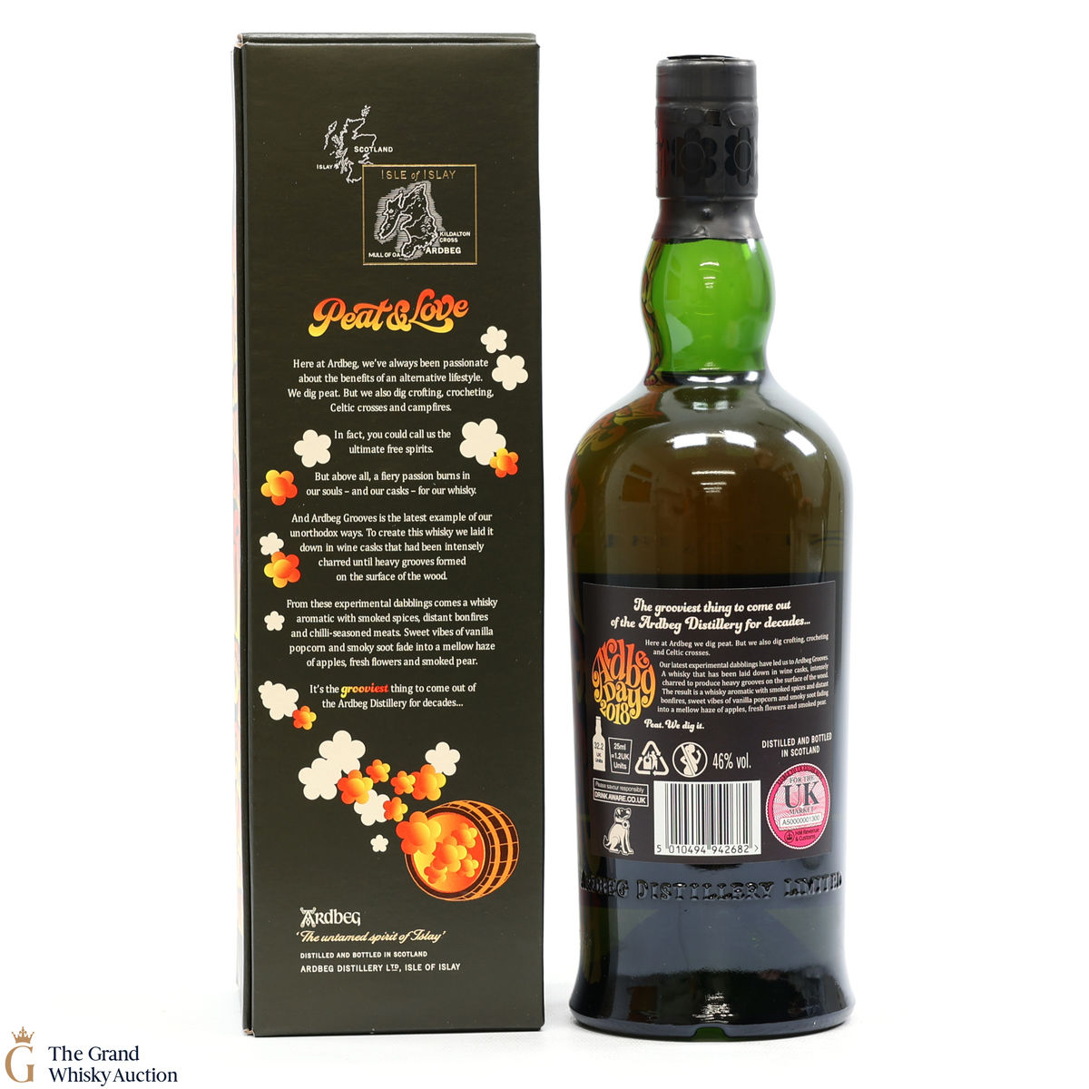This limited edition Islay single malt was released to mark the 2018 Ardbeg Day at the Islay Festival of Music & Malt. The theme is a throwback to the Island's 1960s spirit, embodying the ideals of 'peat & love'! Ardbeg Grooves is crafted with ex-wine casks that are re-charred to create heavy grooves in the wood, allowing more interaction with the spirit and creating a richer flavour.