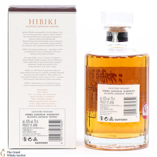 Hibiki Japanese Harmony is made with malt whiskies from the Yamazaki and Hakushu distilleries, as well as grain whisky from the Chita distillery. The whiskies are drawn from 5 different types of cask, including American white oak casks, Sherry casks and Mizunara oak casks. The blend itself was crafted by the Suntory Whisky blending team, led by Master Blender Shingo Torii. An elegant expression, with wafts of honey, orange, a herbaceous touch or two and light oak
