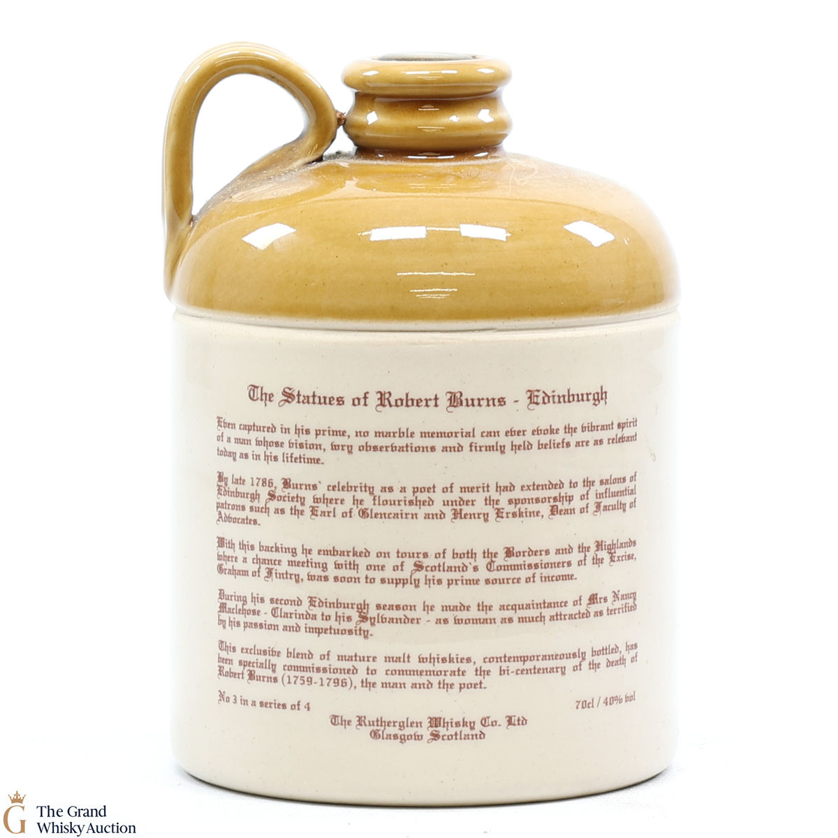 A limited edition ceramic decanter containing a blend of mature malt whiskies that was specially commissioned to commemorate the bi-centenary of the death of poet Robert Burns (1759-1796).