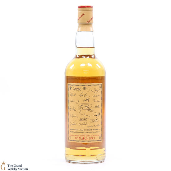 This bottle of Glenmorangie 10 Year Old was released in celebration of the Scottish Rugby Team's Grand Slam win in 1990 - the victory took place on 17th March 1990 and this is detailed on the neck label.