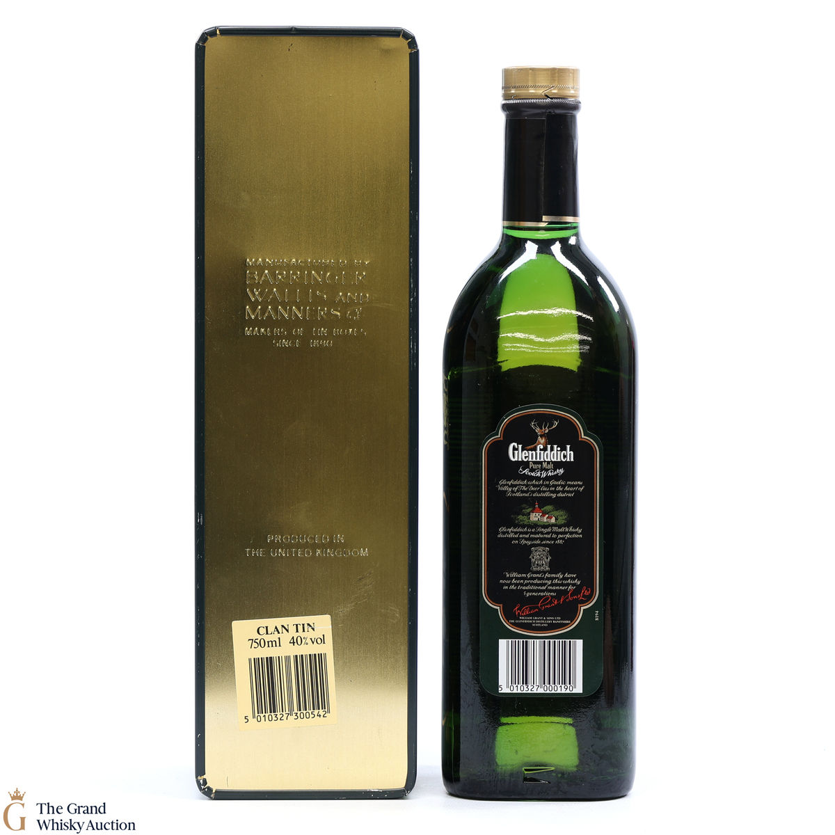 A collectable Glenfiddich single malt Scotch whisky from the 1980s in a Clans Of The Scottish Highlands presentation tin featuring Clan MacPherson.
