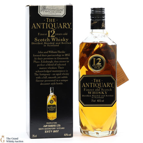 This bottling from Antiquary is a blend of some of Scotland's greatest 12-year-old malt and grain whiskies, including Royal Lochnagar, Tomatin, Cragganmore, Mortlach, Bowmore, Glenkinchie to name a few. Also, a quirky feature is that In the lid of this bottle box, there is a coaster that pops out!