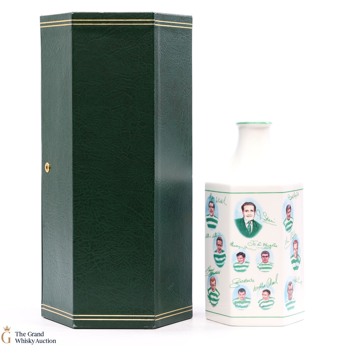 Limited Edition Astbury fine bone china decanter filled with 25 year-old Scotch Whisky commissioned by the Lisbon Lions to commemorate the 25th anniversary of the winning of the European Champions Cup. The decanter has pictures of all the Celtic team.