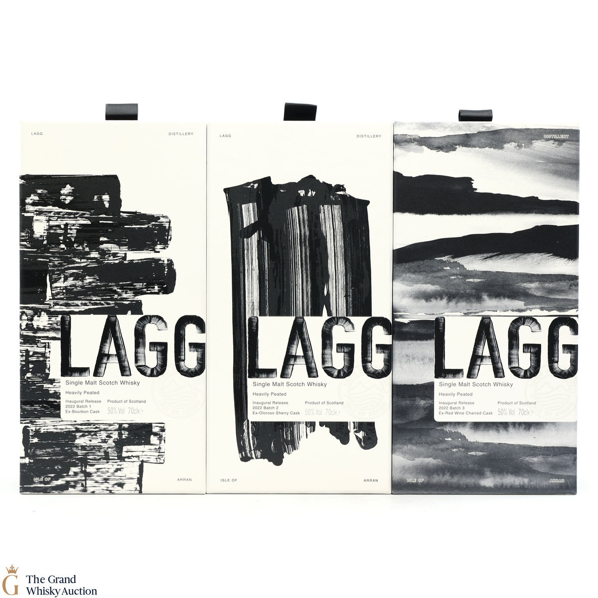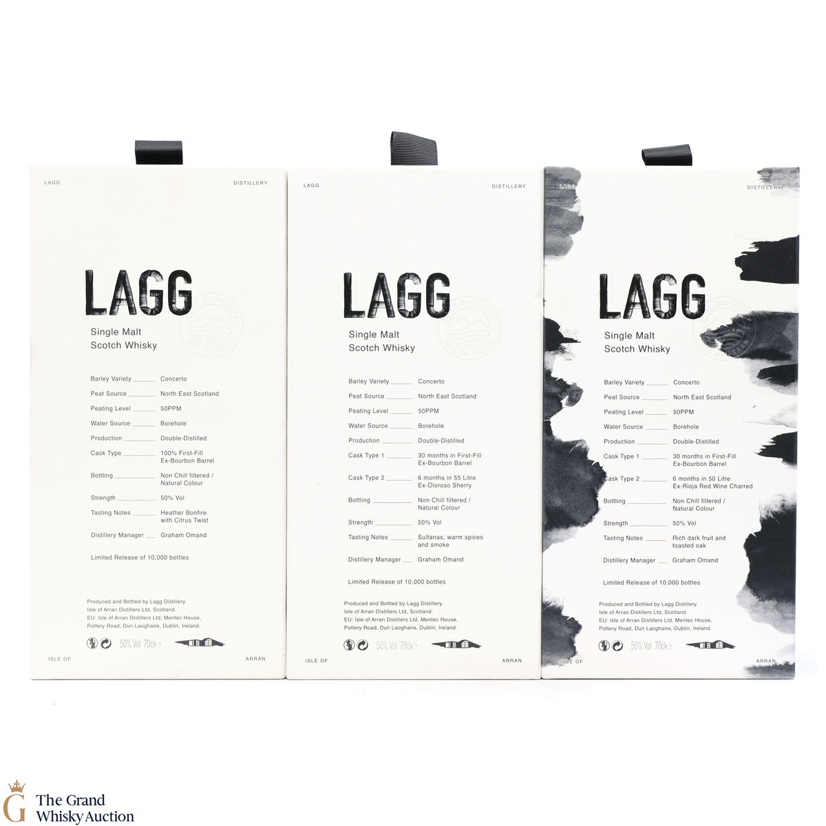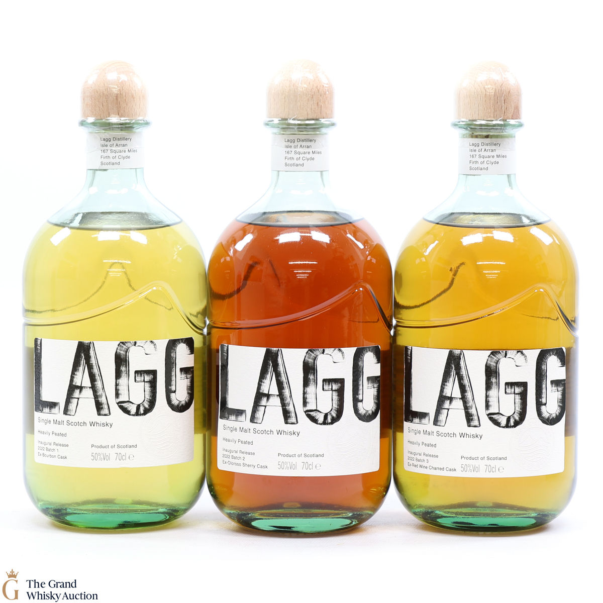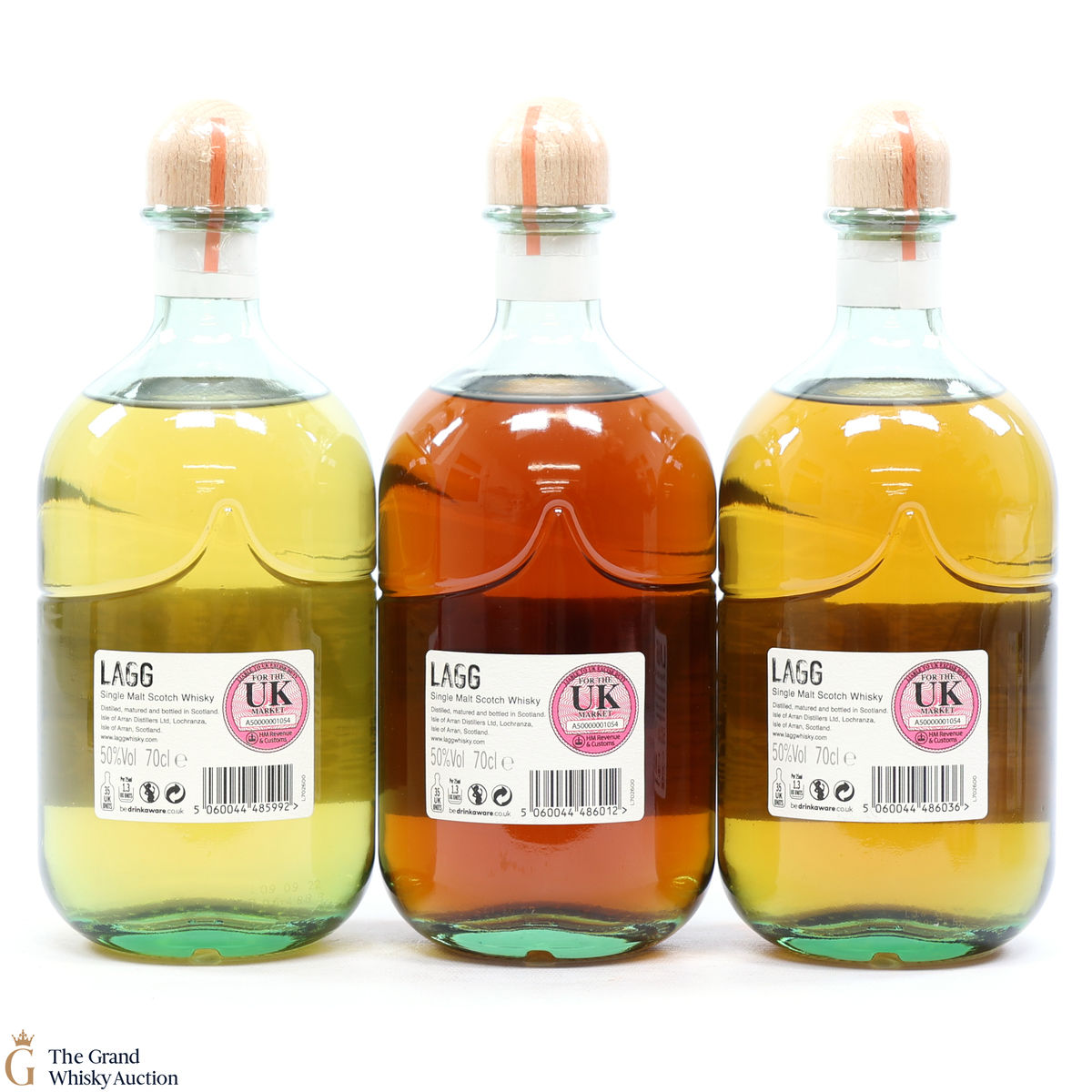 This lot includes one of each of the three inaugural releases from the Lagg Distillery in Arran: