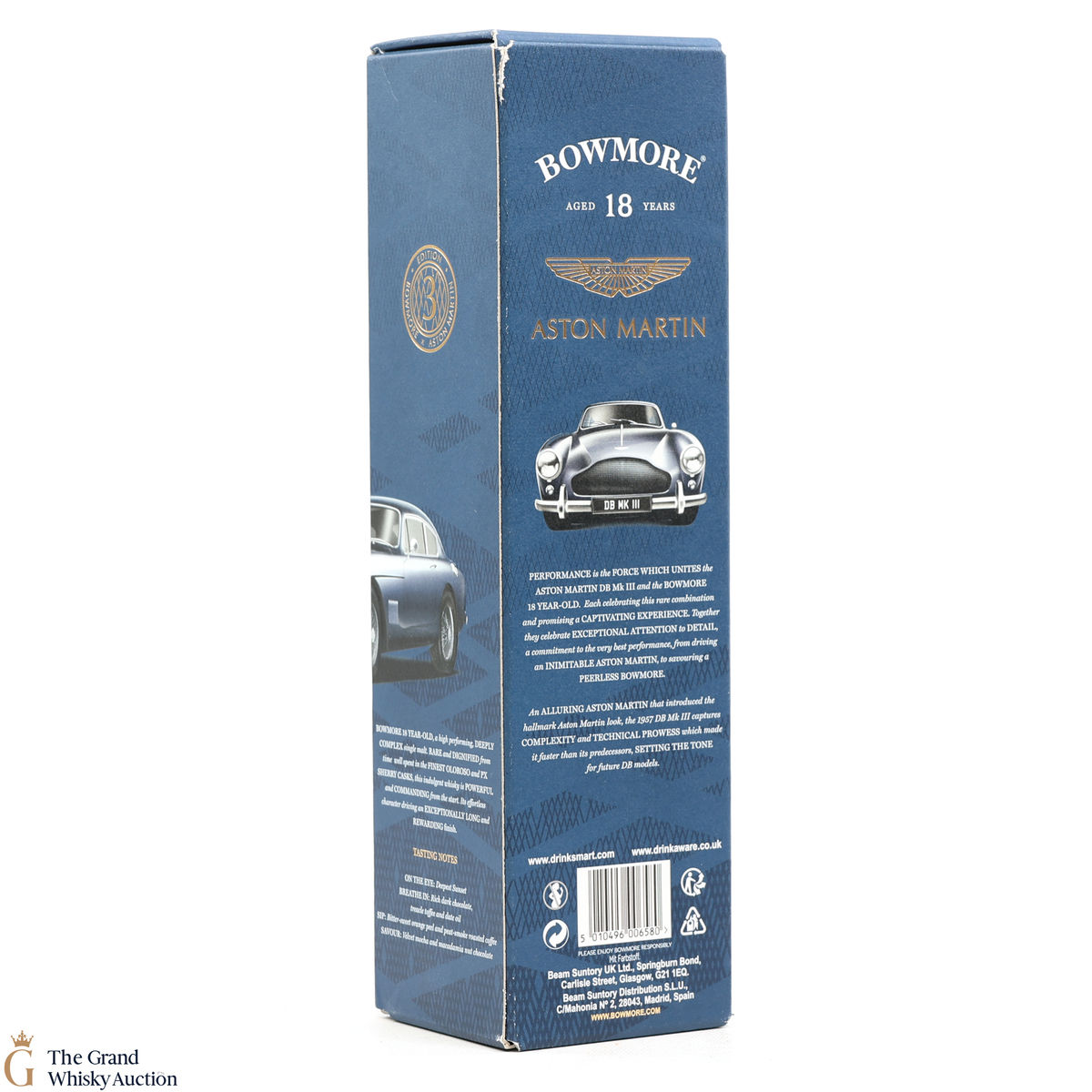 Distilled at the Bowmore Distillery in Islay, this 18 year old single malt was matured in both Spanish Oloroso and PX. This is the first edition bottling to celebrate the collaboration with Aston Martin, named Dark and Intense it is available exclusively to global travellers. Each of the three editions of the Aston Martin Series features a different car, the 18 year old features the DB MK III.