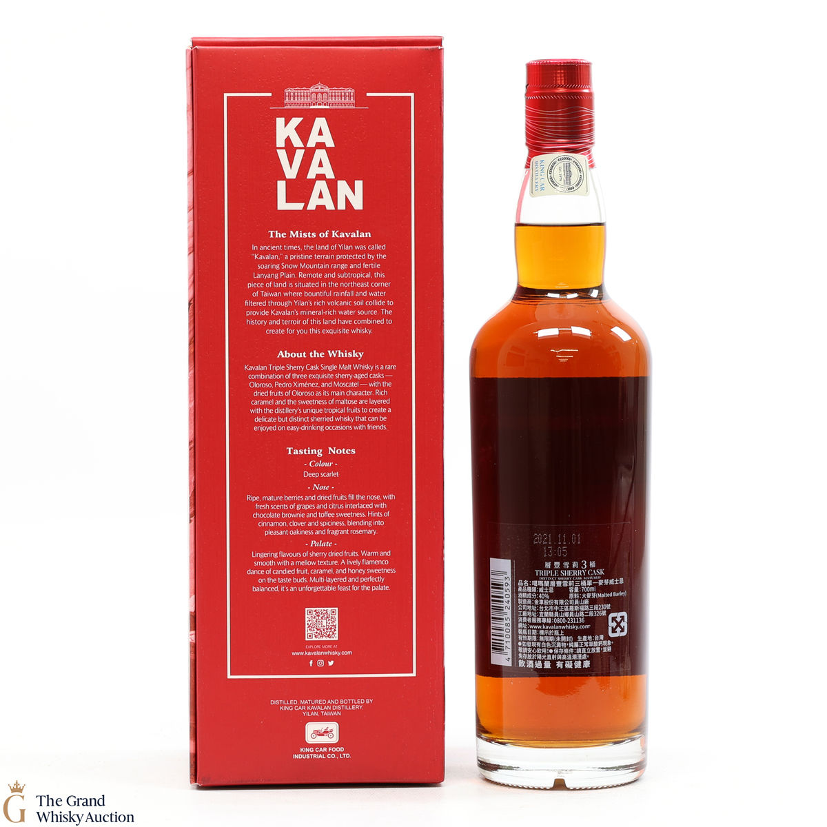 This is a 70cl bottling of single malt from Taiwan's Kavalan. Only operating since 2005 they have impressed with their young but full flavoured whisky. A rare combination of 3 exquisite sherry-aged casks - oloroso, Pedro Ximenez and Moscatel.