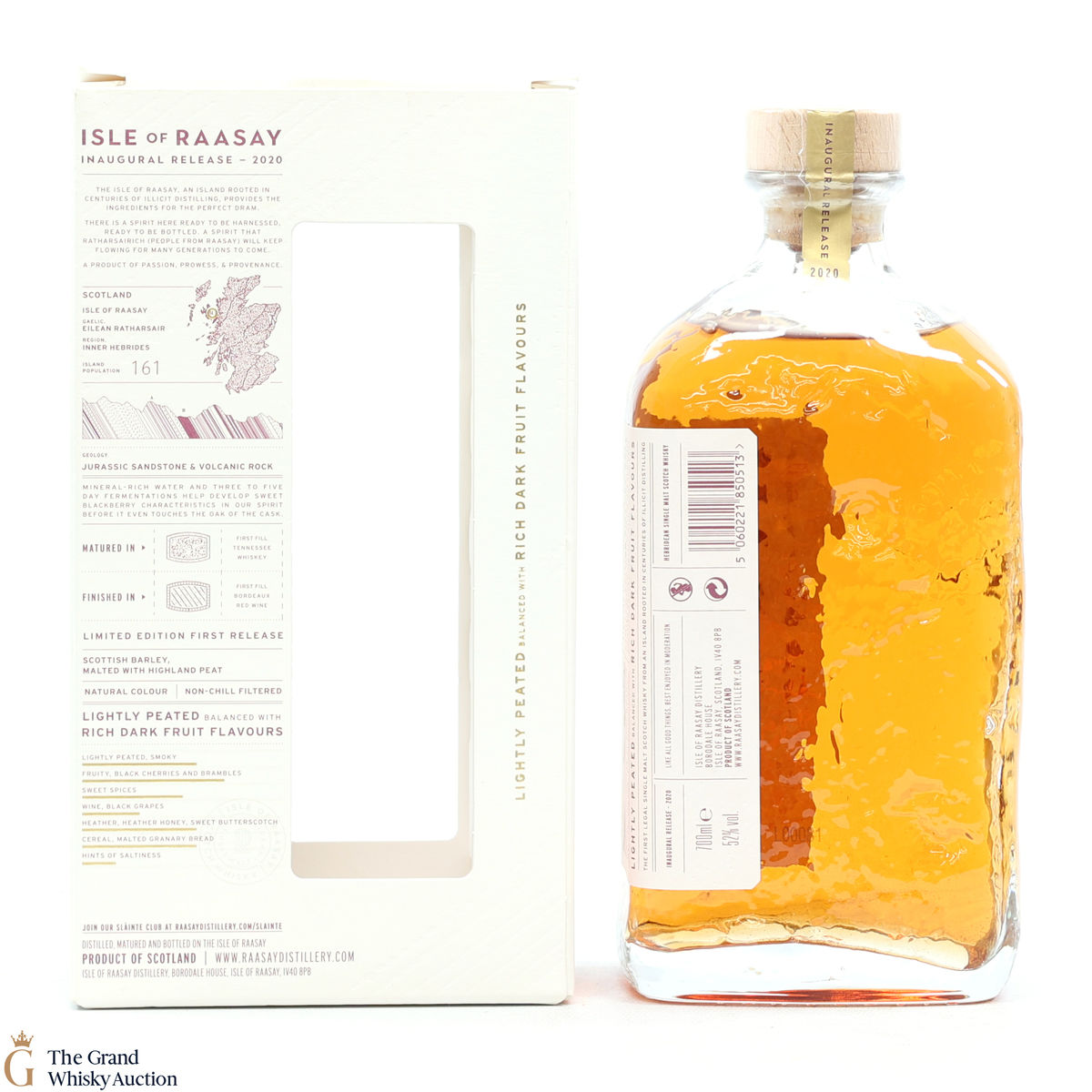 The inaugural release from the Isle of Raasay distillery is a limited edition release matured in first-fill American oak, and finished in 21 exclusive first fill Bordeaux red wine casks. They have created an elegant, lightly peated (15-20 Peat or Phenol Parts Per Million). Bottled at 52% and in a unique glass bottle which captures the island's geology.