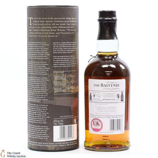 This is the introductory release from The Balvenie Stories range. Celebrating Kelsey McKechnie's idea to import virgin oak barrels from Kentucky and deeply toast them at the distillery's cooperage. They were then filled with Balvenie's ex-bourbon oak aged whisky for a finishing period.