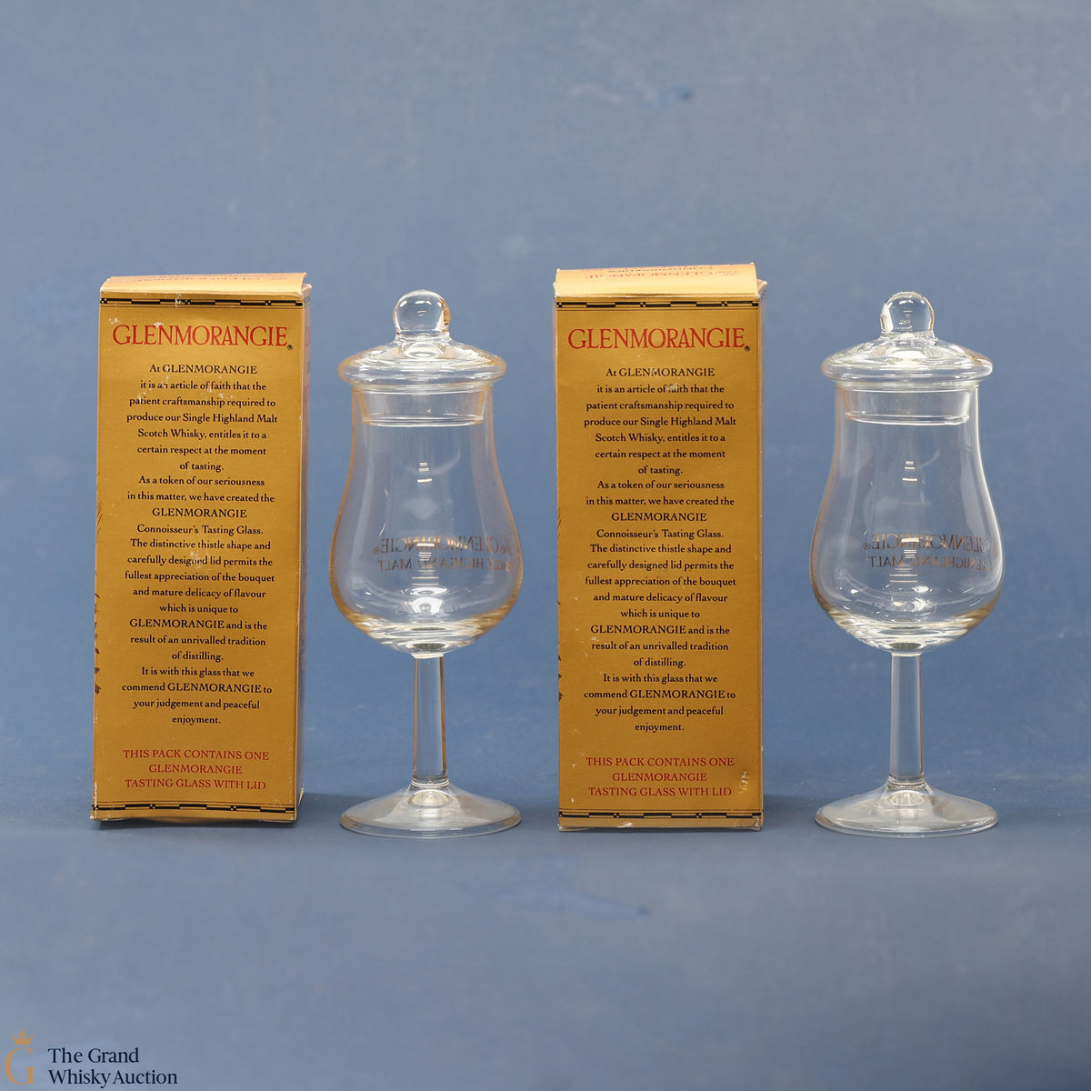 This lot includes 2 x Glenmorangie tasting glasses with lids.