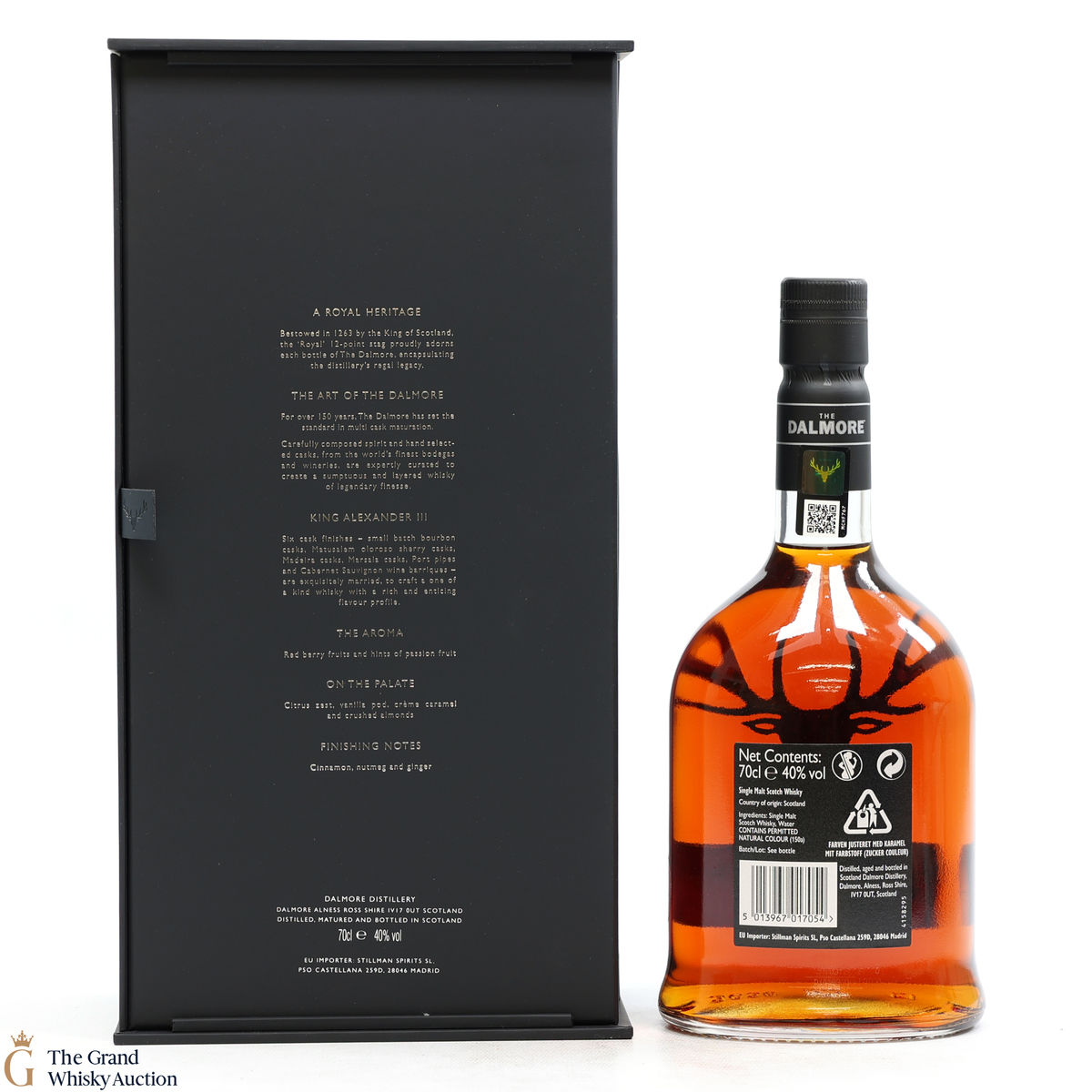 To make The Dalmore King Alexander III, Master Distiller Richard Paterson specially selected 6 casks of differently aged Dalmore malts matured in wine, Madeira, sherry, marsala, Kentucky bourbon and port casks. A remarkable feat of blending crafted to honour the act of saving Scotland's King in 1263. It is a rich, fruity Highland single malt.