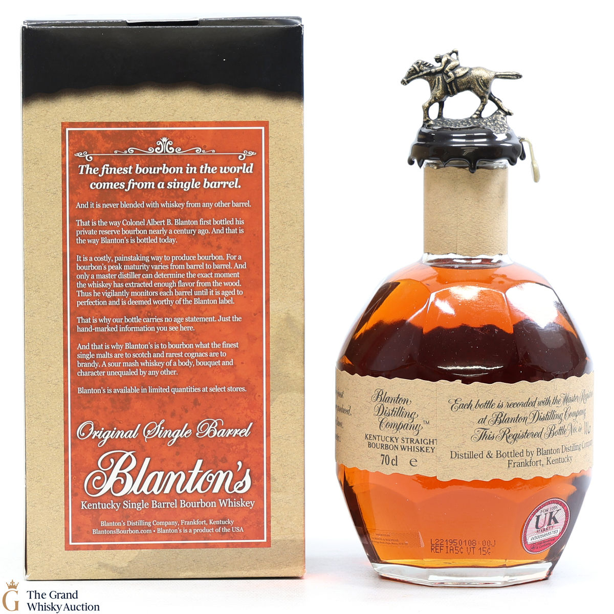 PLEASE NOTE: The wax seal on Blanton's bottles are prone to cracking in transit due to their design. Therefore, as stated in our T&C’s, we do not and will not accept liability should the seal be breached, broken, split or leak in transit. Additionally, please know due to the design of the internal cardboard packaging that surrounds the top of the bottles, it too may be torn. By bidding on this lot you have understood this to be true. Insurance is for complete breakage or loss in transit only.