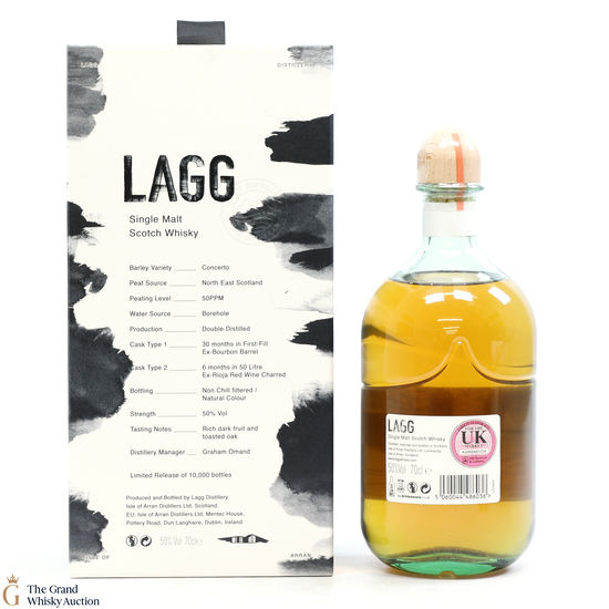This is one of three inaugural releases from the Lagg Distillery in Arran. This is a heavily peated dram matured in an ex-red wine charred cask before being bottled in 2022.