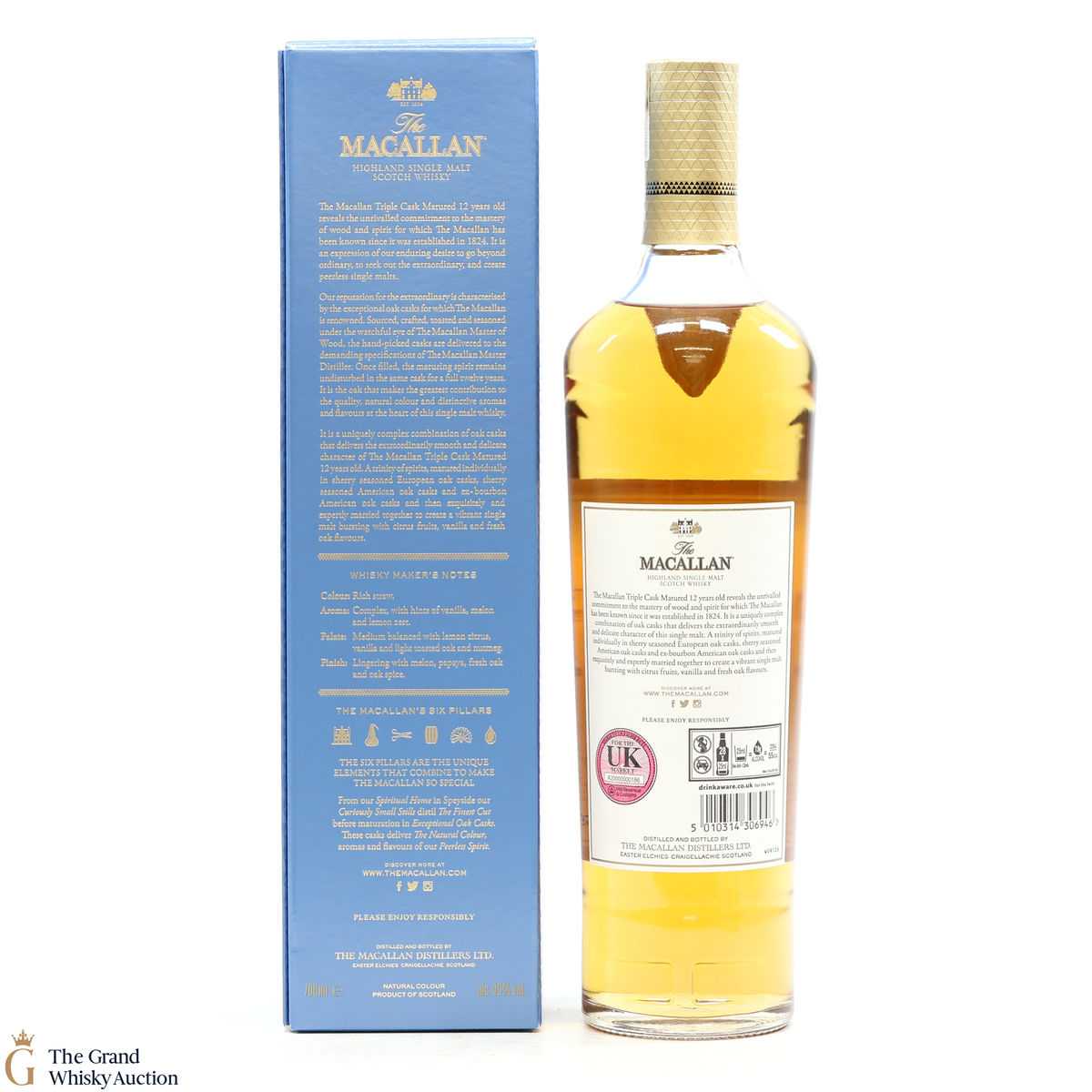 The 12 year old single malt was matured for 12 years and drawn from a combination of European sherry seasoned casks, American sherry seasoned casks and American ex-bourbon casks. It is part of Macallan's Triple Cask range which was launched in 2018, taking the place of the Fine Oak range.