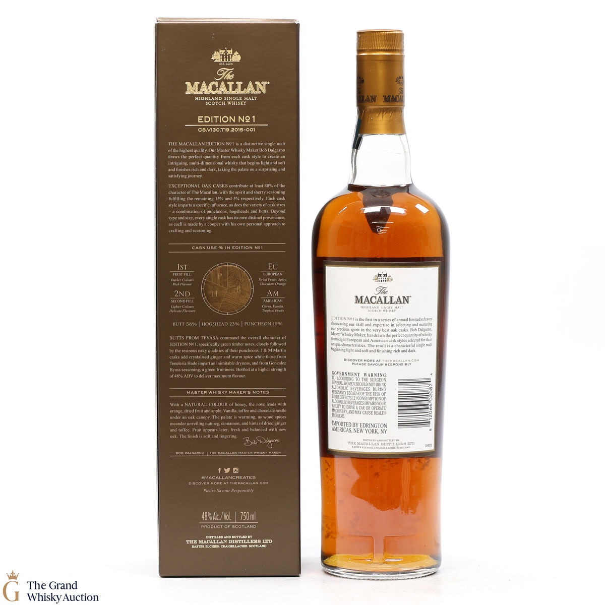 The Macallan Edition No. 1 is the debut expression in the Edition Series. This is a limited edition drawn from eight European and American oak cask styles selected for their unique characteristics.