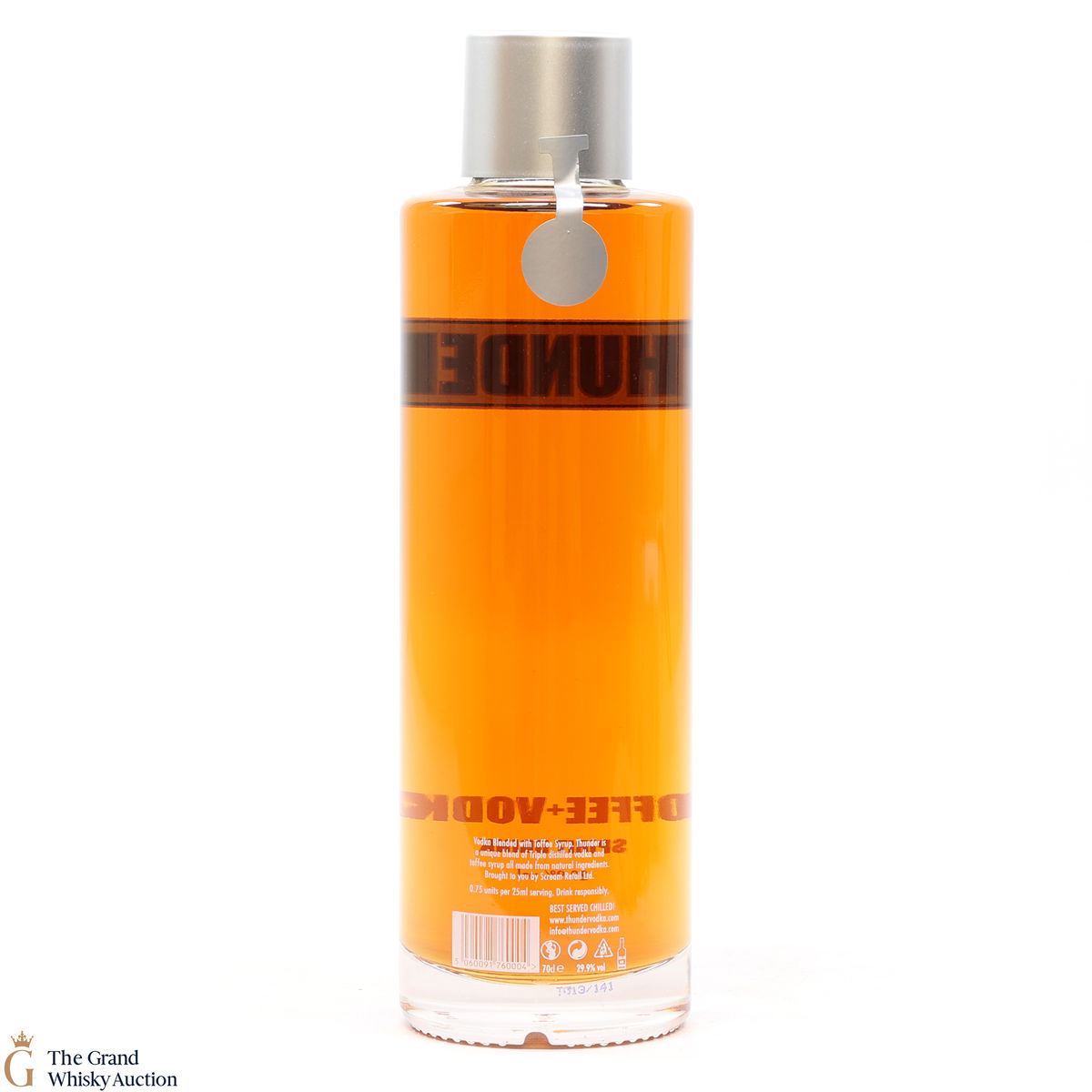 This is a vodka blended with toffee syrup. Thunder is a unique blend of triple distilled vodka and toffee syrup all made from natural ingredients.