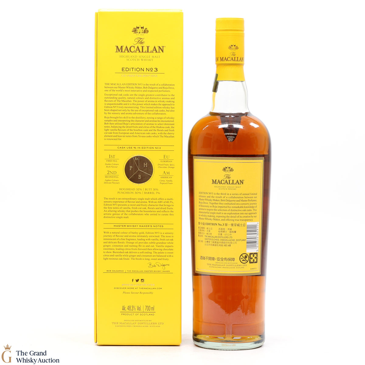 Edition No.3 was a collaboration between master perfumer Roja Dove and master whisky maker Bob Dalgarno. With Dove's remarkable sensory knowledge, Dalgarno shaped the character of Edition No.3 from a combination of European and American oak casks to create a deliciously sweet, single malt with floral notes.