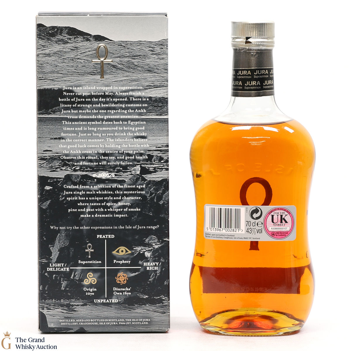 A lightly peated single malt made up of different ages. It is named after the fact that Islanders were very superstitious in the past, this is a nod to them, and to the Island of Jura which is still dotted with ancient stones and markings. When you raise a glass of this whisky, you're raising a glass to the ancient ways of the island.