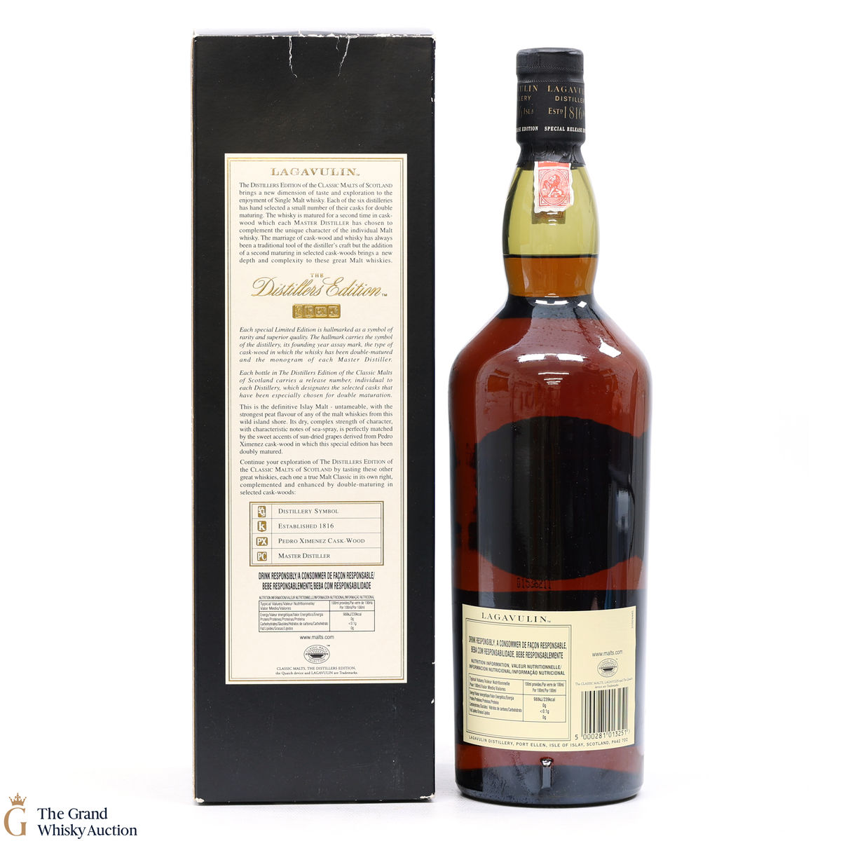 Lagavulin 1993 Distillers Edition was double matured and was bottled in 2009 at 43% ABV. Lagavulin is the most sought after bottling of the Distiller’s Edition range.