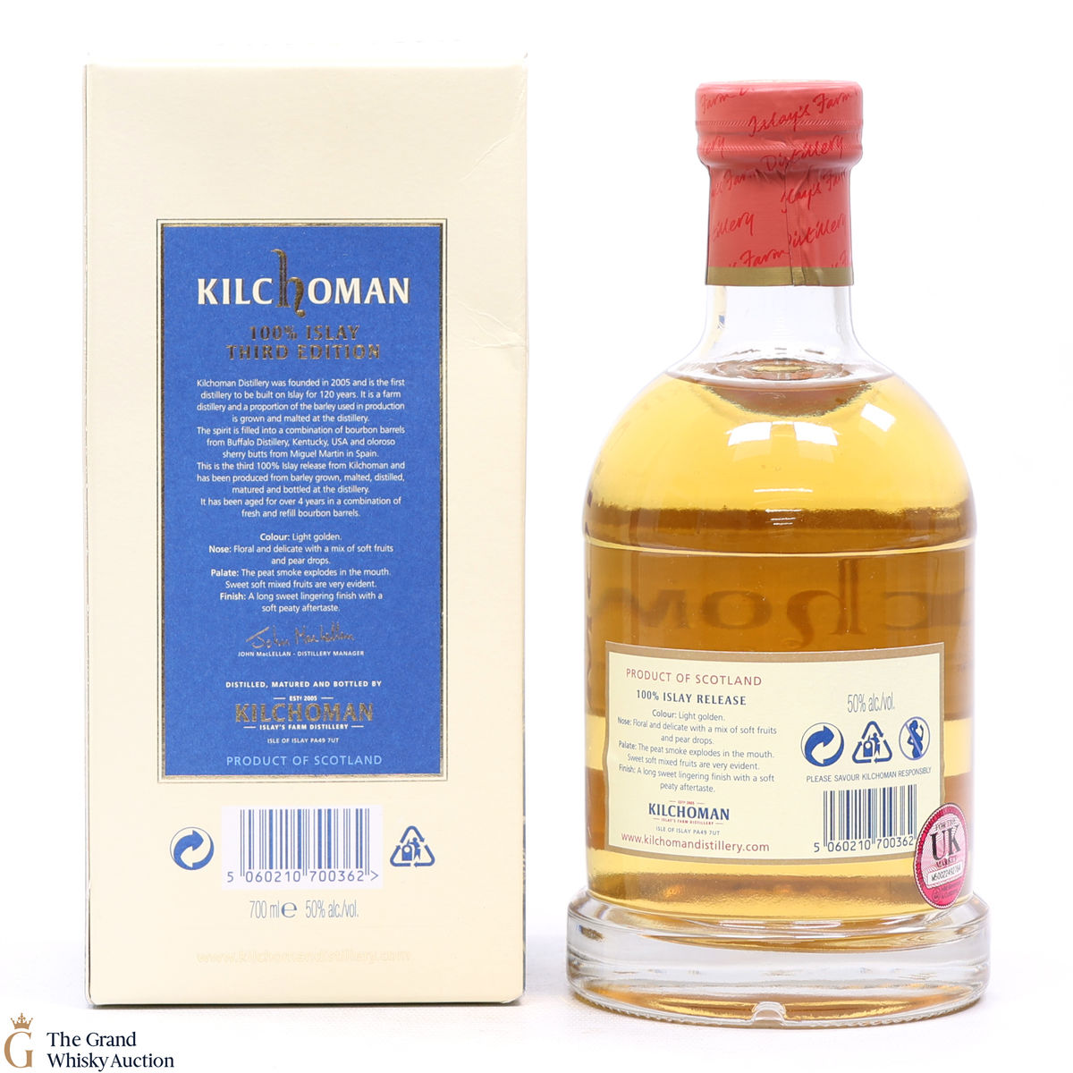 This is the 3rd edition of Kilchoman's very popular 100% Islay series. This is a lightly peated single malt Scotch whisky (even compared with their Machir Bay and Loch Gorm), made with barley which was grown on Islay. It was matured in both fresh and refill Buffalo Trace Barrels.