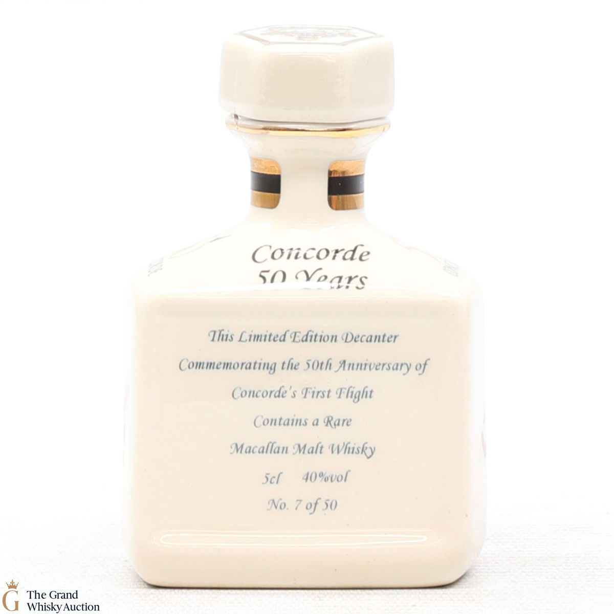 A mini decanter commemorating the 50th anniversary of Concorde's First Flight. Filled with Macallan, this is one of 50 bottles released.