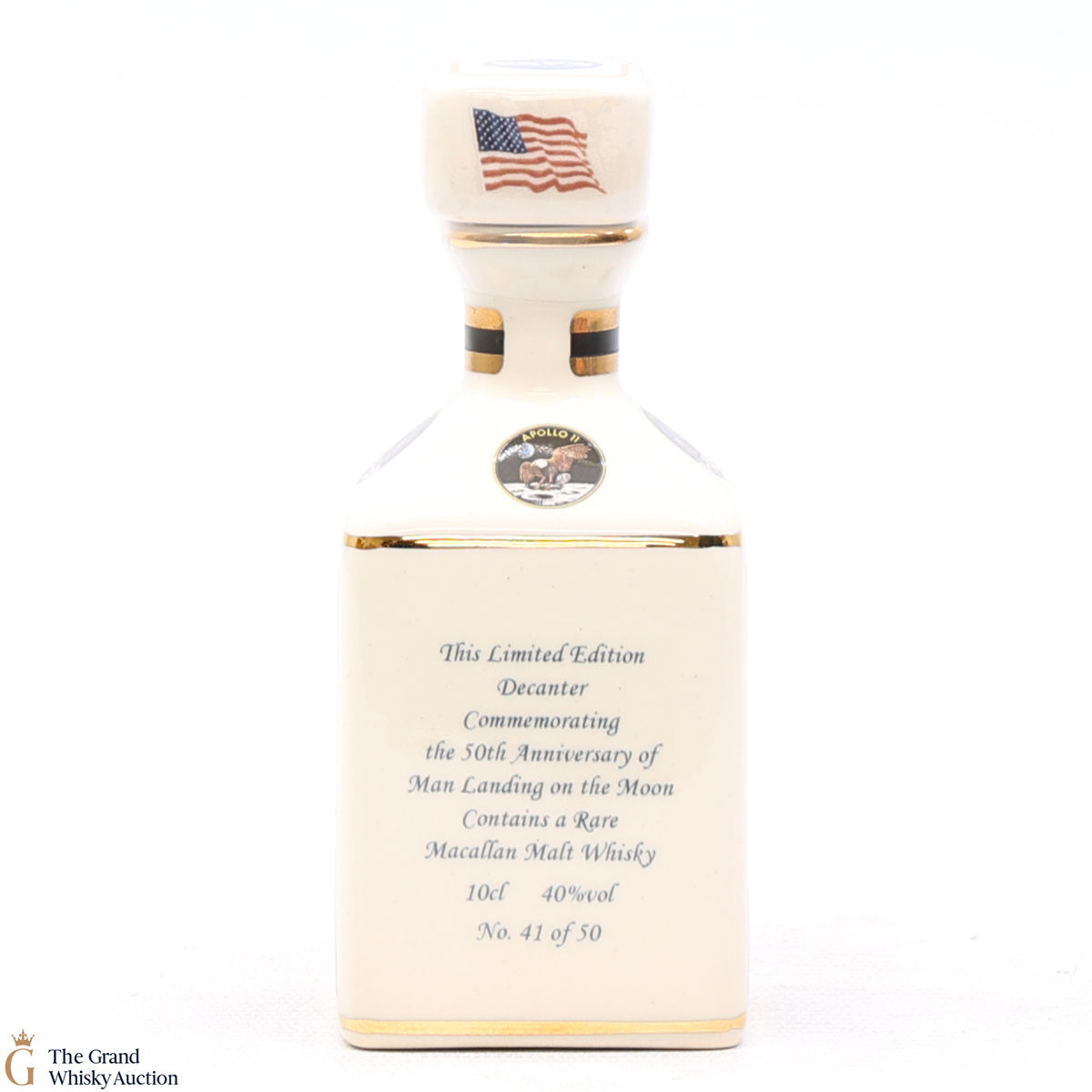 A mini decanter commemorating the 50th anniversary of Man Landing on the moon, Edwin (Buzz) Aldrin. Filled with Macallan, this is one of 50 bottles released.