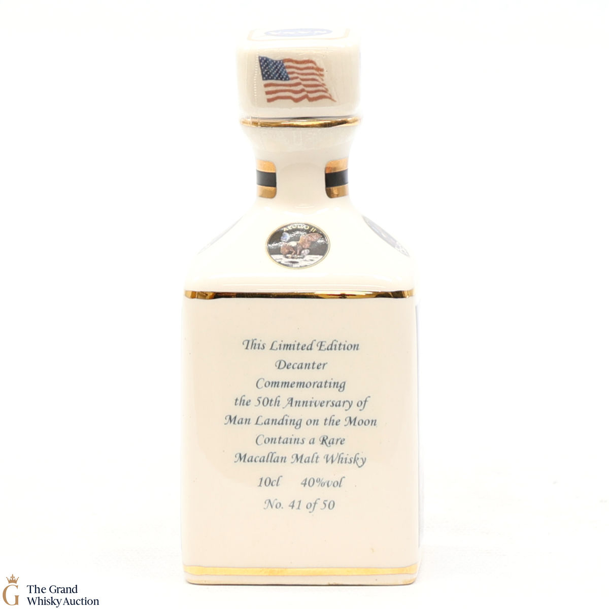 A mini decanter commemorating the 50th anniversary of Man Landing on the moon, Neil Armstrong. Filled with Macallan, this is one of 50 bottles released.