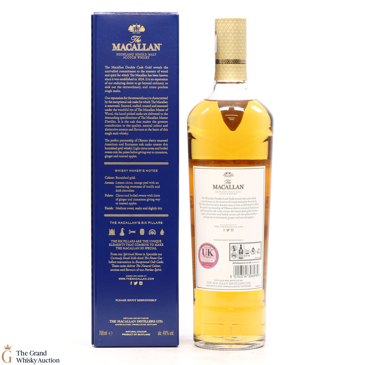 Macallan Gold was first introduced in 2012 as part of the distillery's 1824 range of non-age statement expressions, before being renamed Macallan Gold Double Cask in 2018 as part of the new core range. Matured in a combination of first fill and refill American oak and European oak sherry casks to create an incredibly smooth and rich single malt. Soft gold in colour, this is the lightest expression of the Macallan range, but still packed with typical Speyside Macallan flavours.
