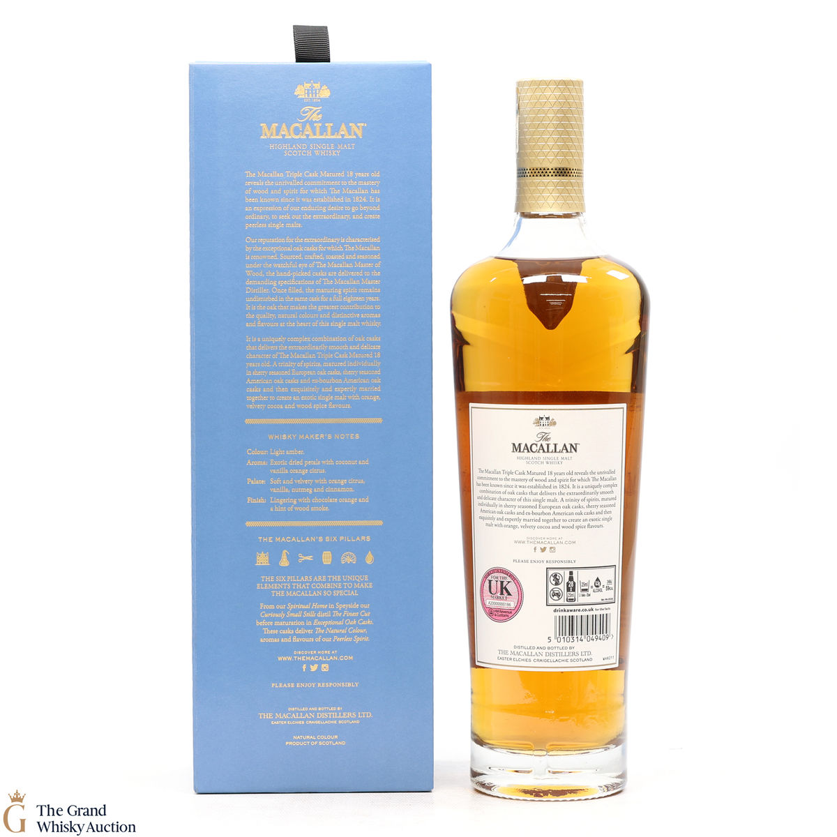 This 18 year old Macallan single malt was released in 2018 and sits is at the top of the Triple Cask range (which replaced the Fine Oak range). The whisky was matured in a combination of European sherry seasoned casks, American sherry seasoned casks and American ex-bourbon casks. This expression boasts bountiful notes of vanilla, dried fruit and woody spice.