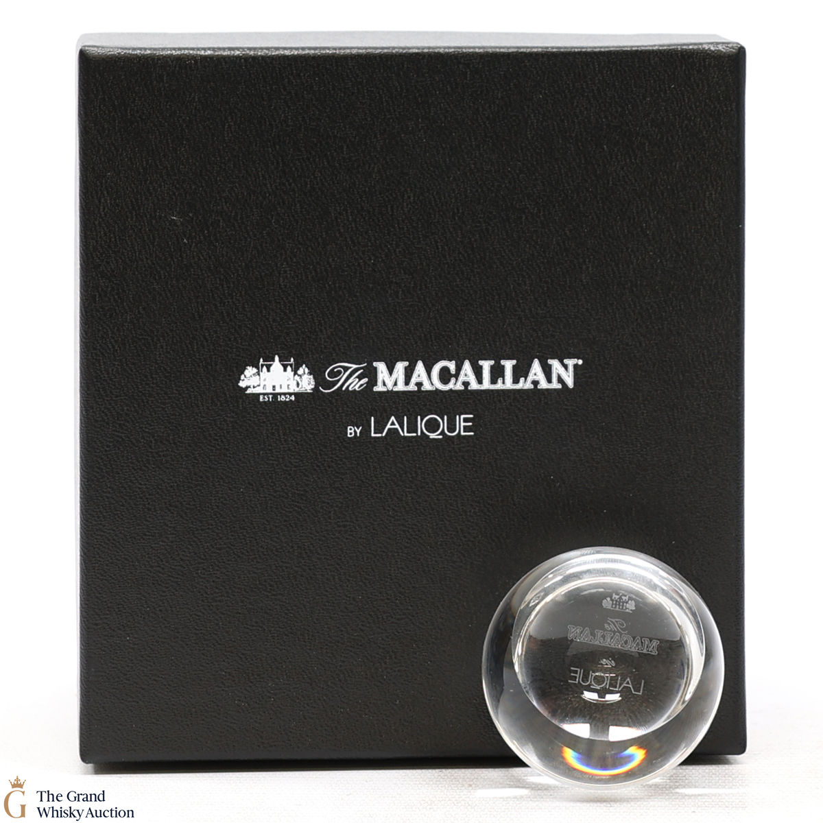 A branded The Macallan in Lalique paperweight.