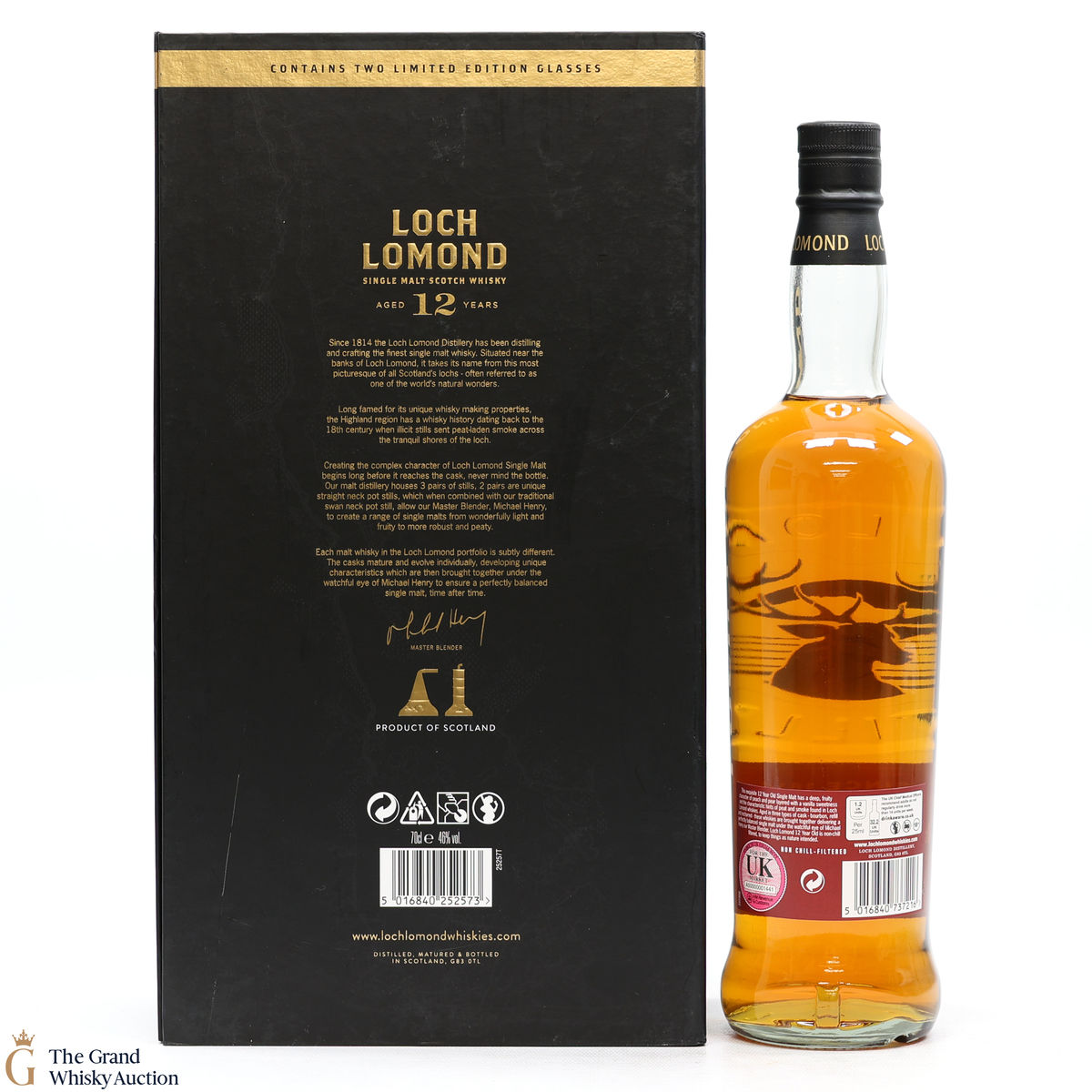 A single mal Loch Lomond Distillery aged for 12 years. This expression was matured in American Oak and drawn from a selection of three cask types - bourbon casks, refill casks, and recharged casks. This set includes 2 x glasses.