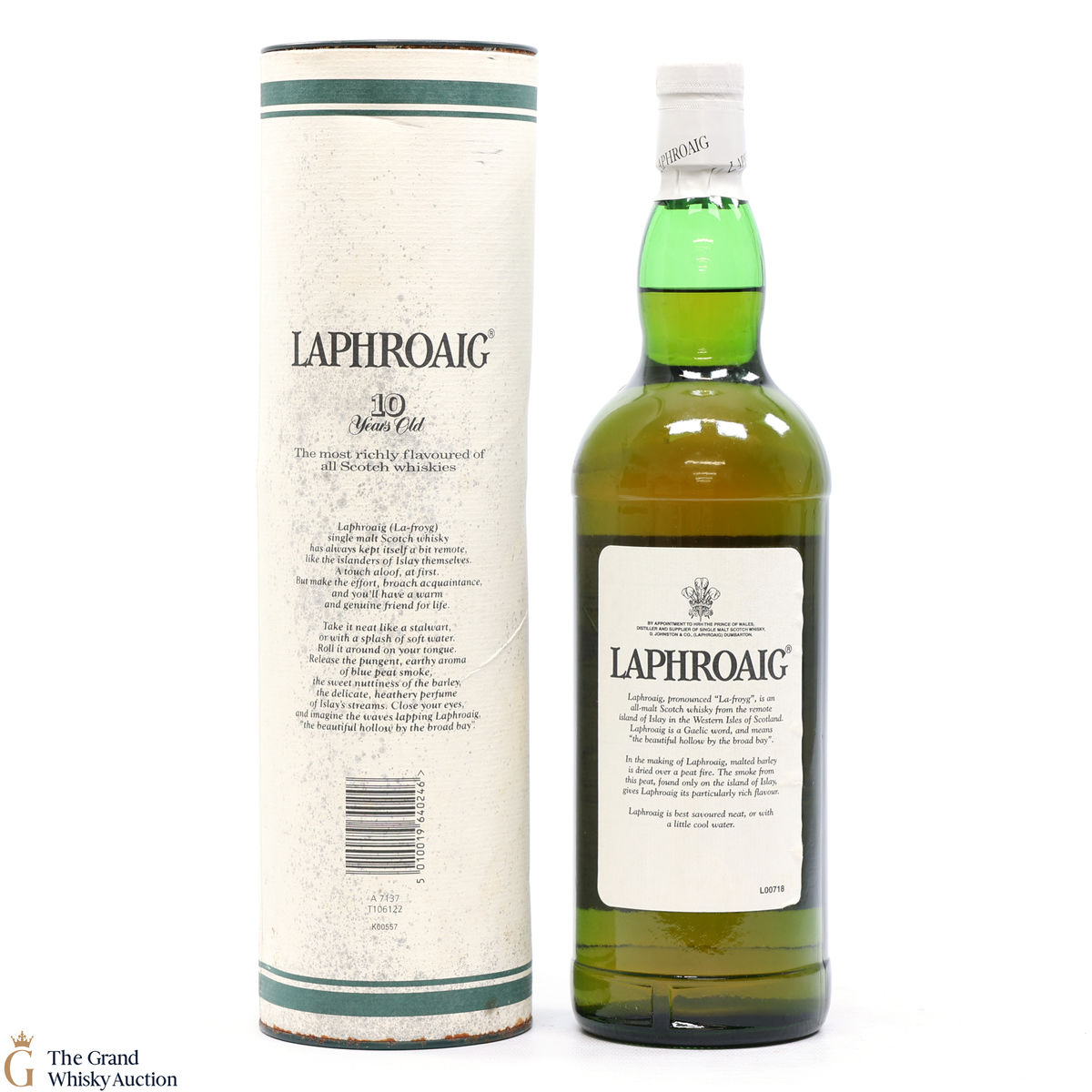 A 1L of the medicinal 10-year-old from Islay's bestselling distillery, Laphroaig. In making Laphroaig, malted barley is dried over a peat fire. The smoke from this peat, found only on Islay, gives Laphroaig its particularly rich flavour.
