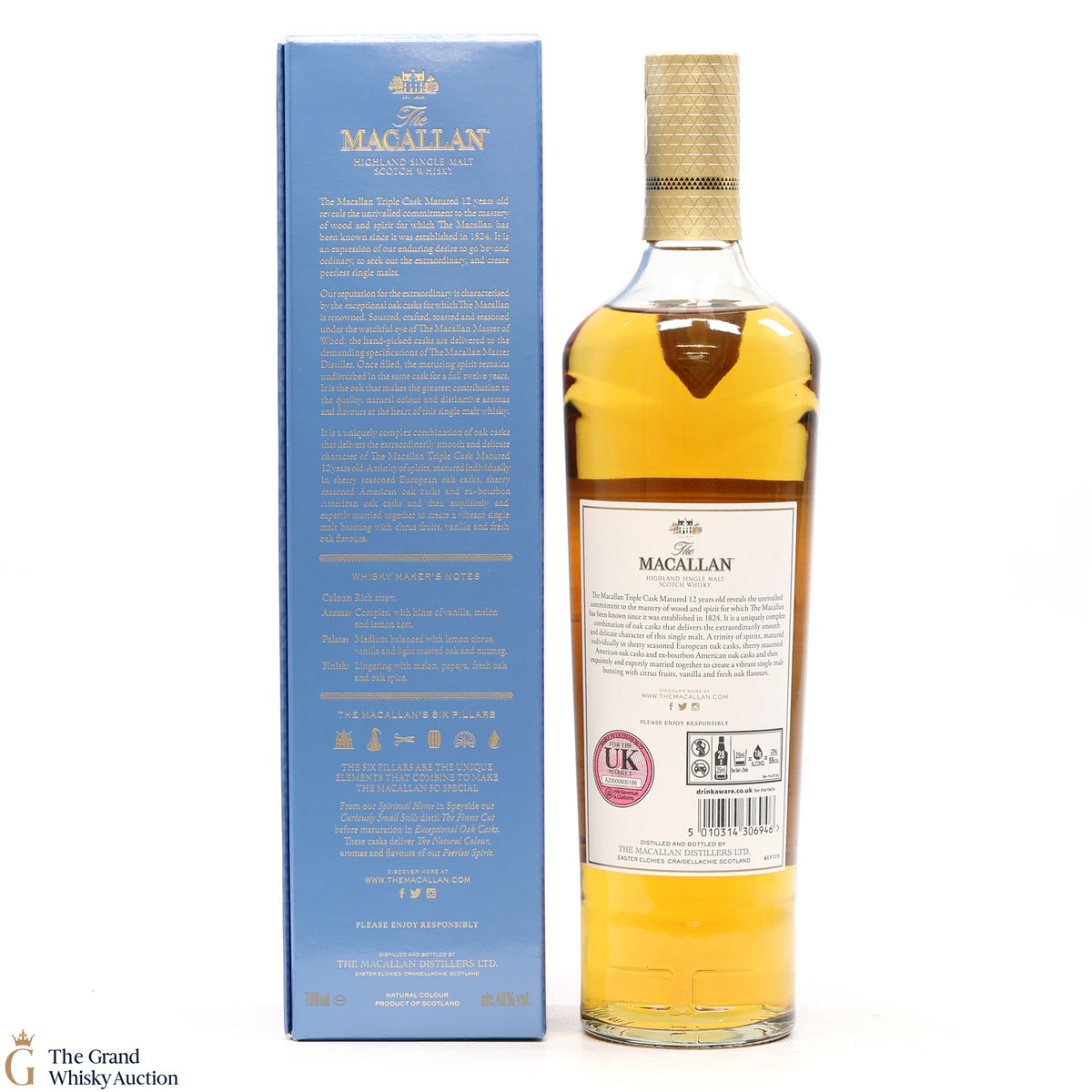 The 12 year old single malt was matured for 12 years and drawn from a combination of European sherry seasoned casks, American sherry seasoned casks and American ex-bourbon casks. It is part of Macallan's Triple Cask range which was launched in 2018, taking the place of the Fine Oak range.