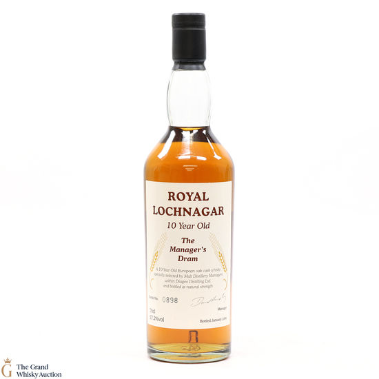 This 10 year old Royal Lochnagar is from the highly collectable Manager's Dram series of single malt releases. The bottles were released to be available exclusively to employees of what is now known as Diageo. Each release was selected by distillery managers within Diageo and bottled at natural cask strength.