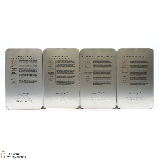 Included in this lot: 4 x 70cl Arran Explorers Series as below & 4 x Metal Posters.