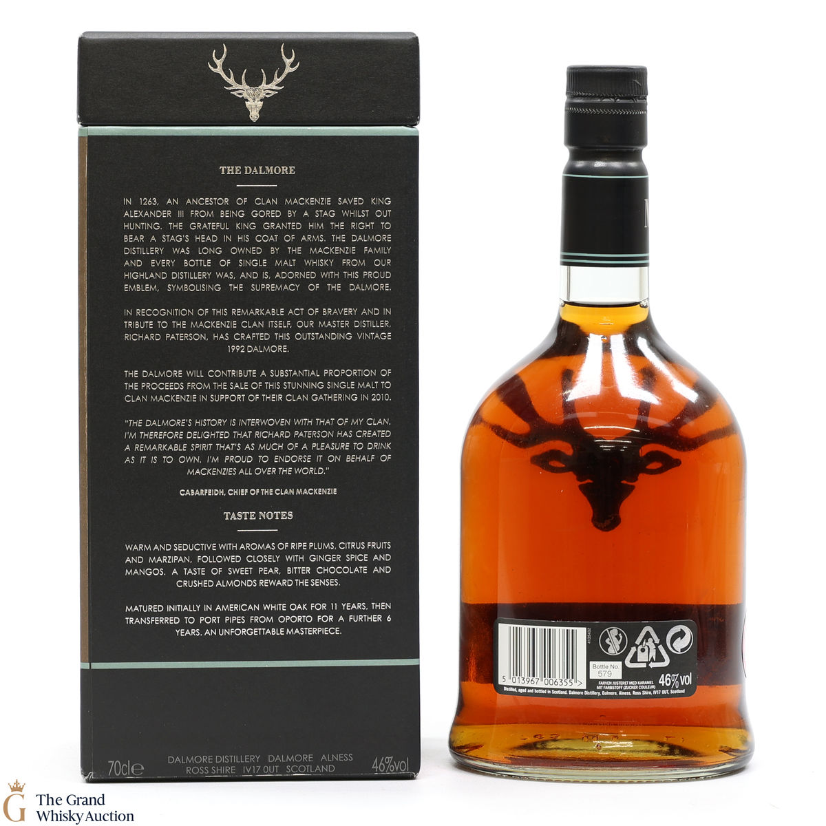 Dalmore released 'Mackenzie' in 1992 in commemoration the long-standing tie between Dalmore and Clan Mackenzie. This bottle also commemorates an interesting point in the history of Dalmore Distillery. In 1263 an ancestor of Clan Mackenzie saved the Scottish king Alexander III from being injured by a stag on a hunt. King Alexander then granted him with the right to bear a stag's head as their coat of arms. Since the Dalmore Distillery was long owned by the Mackenzie family, the symbol of the Stag became Dalmore's.