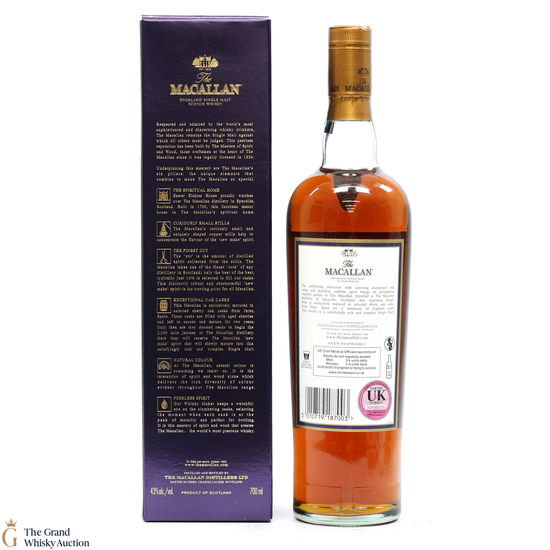 This Macallan 18 Year Old Single malt was bottled in 2017 in Speyside Scotland. This classic was one of the last bottles in this shape. It is now becoming rarer and a staple item in a collector's cellar!