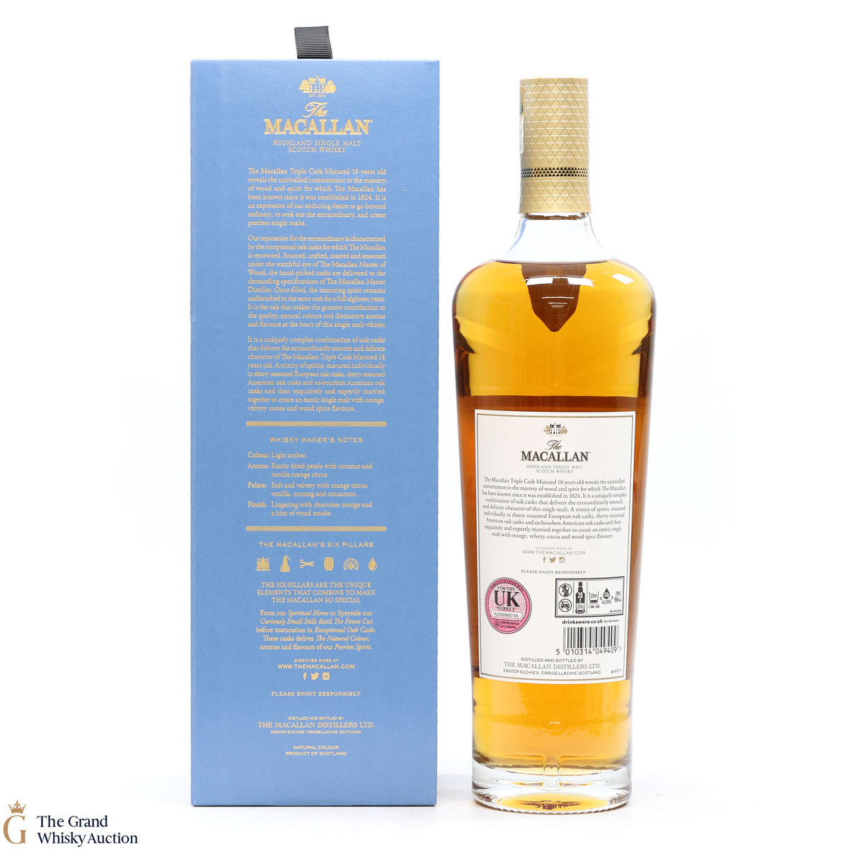 This 18 year old Macallan single malt was released in 2018 and sits is at the top of the Triple Cask range (which replaced the Fine Oak range). The whisky was matured in a combination of European sherry seasoned casks, American sherry seasoned casks and American ex-bourbon casks. This expression boasts bountiful notes of vanilla, dried fruit and woody spice.