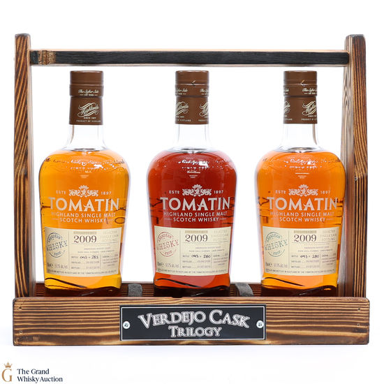 The Tomatin Verdejo Cask Trilogy is the result of a partnership between the Tomatin Distillery and the Aberdeen Whisky Shop. The three releases have been matured in different Verdejo Spanish white wine casks, which is a world first. They were all bottled at cask strength. This lot includes:
