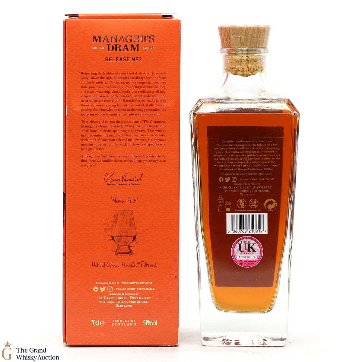 The Glenturret Manager's Dram - Release 2 described as mellow peat. Matured in European Sherry Driven in warehouse 9 before being bottled in 2022.