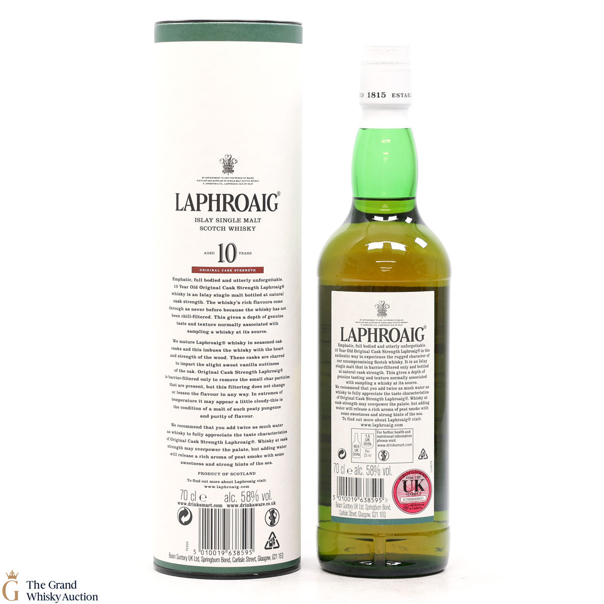 This original cask strength bottling of the medicinal 10 year old from Islay's bestselling distillery, Laphroaig. In making Laphroaig, malted barley is dried over a peat fire. The smoke from this peat, found only on Islay, gives Laphroaig its particularly rich flavour.