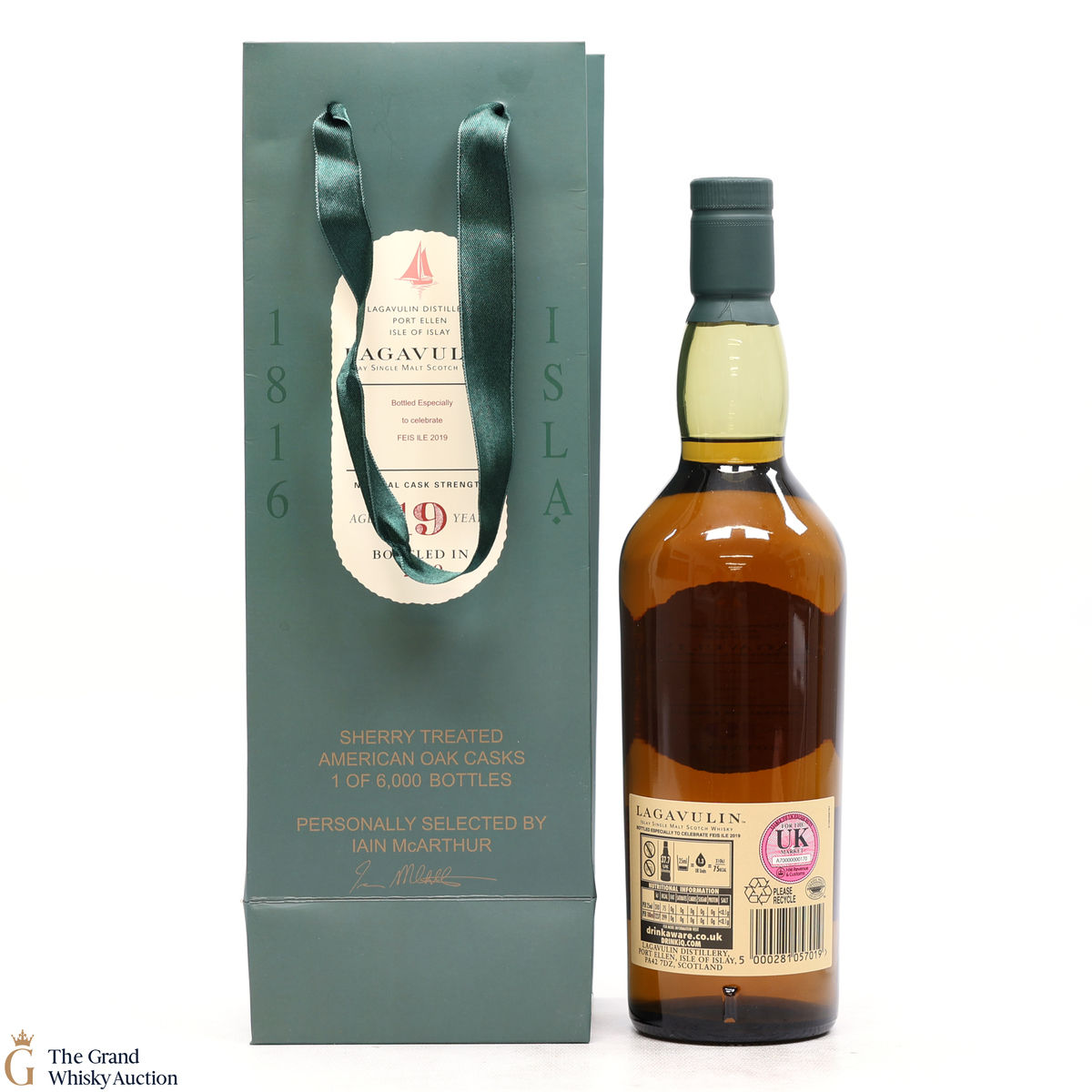 The 2019 Fèis Ìle release from Lagavulin was a 19 year old single malt, matured in three types of casks: refill American oak cask, second Sherry treated American oak cask and a European oak puncheon. 6000 bottles were released.