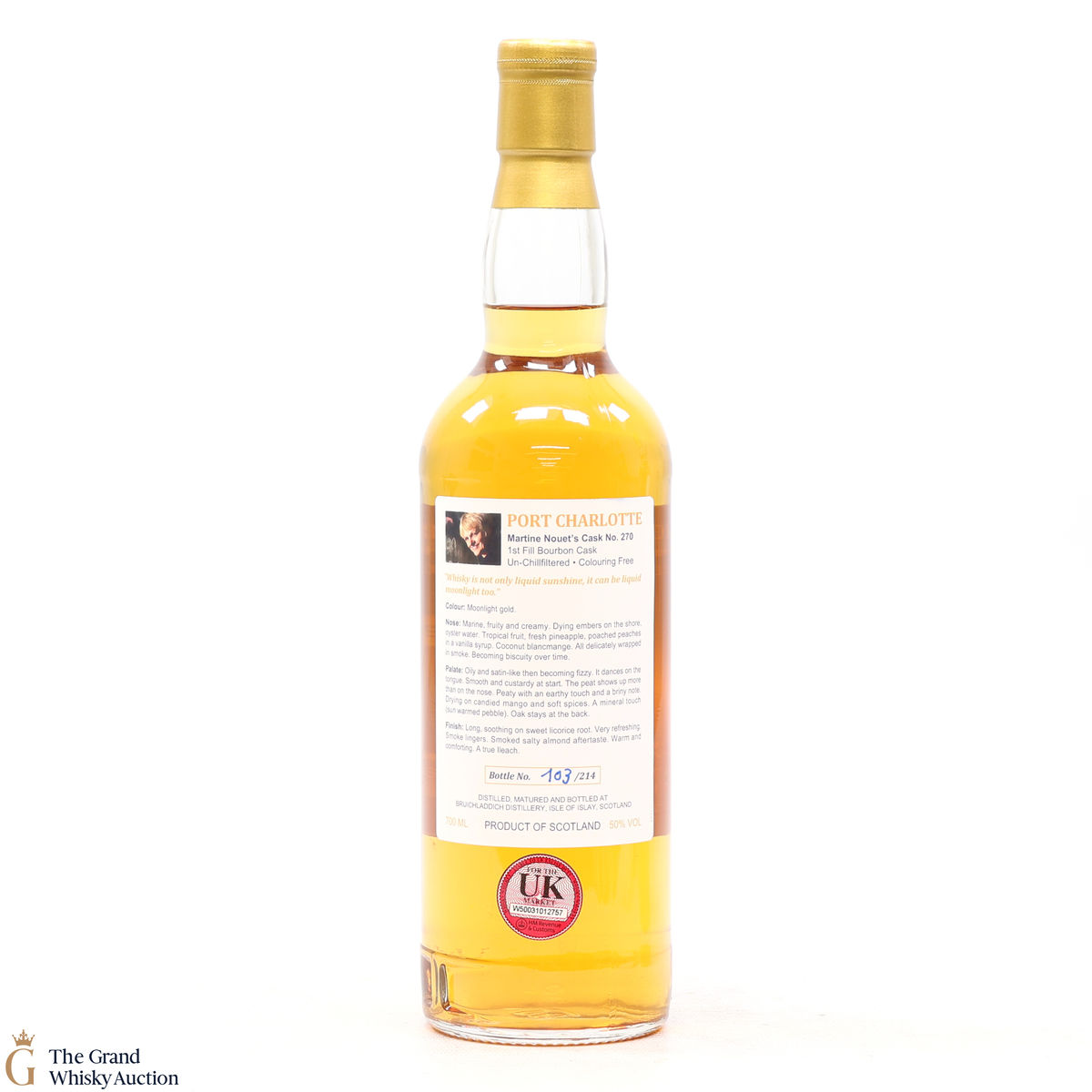 This Port Charlotte 15 Year Old was distilled in 2001 and matured in a 1st fill bourbon cask #270 until October 2016. A private bottling; The Queen of the Still Private Cask from Martine Nouet's cask #270. One of 214 bottles.
